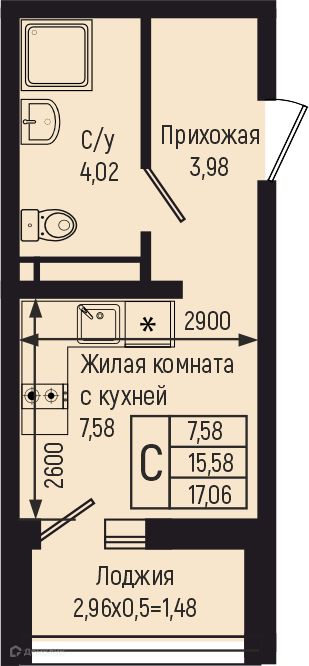 15.85 - 68.85 м²