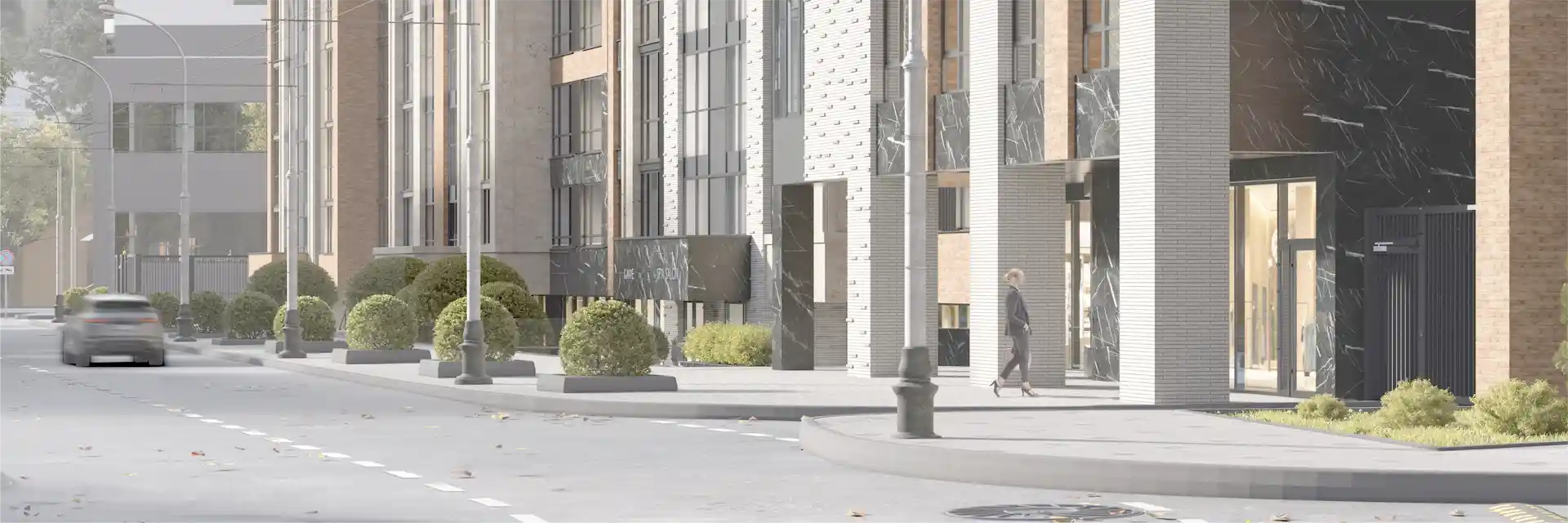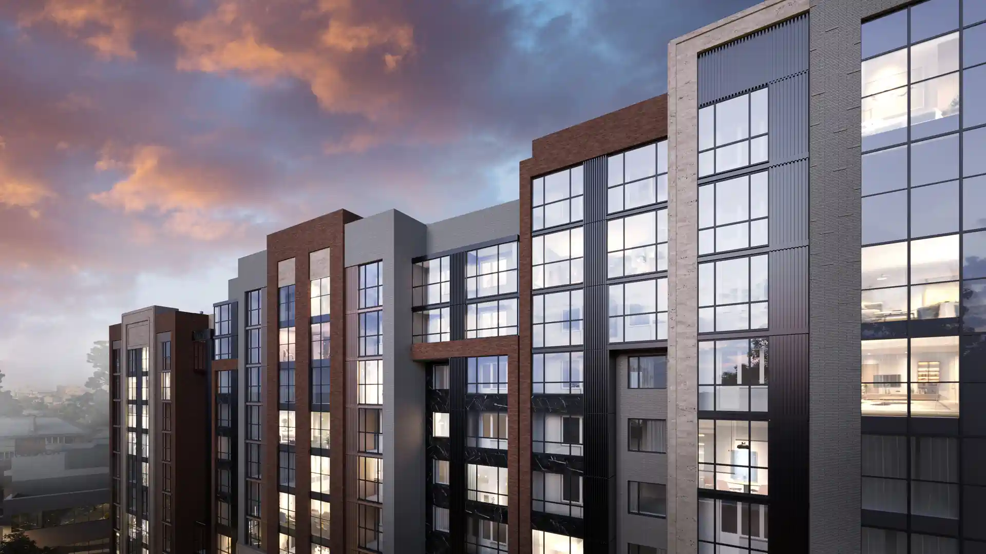Комплекс включает один монолитно-кирпичный корпус, высота которого варьируется от 10 до 12 этажей. Высота потолков в квартирах составляет 2,57 метра, а отделка предлагается в предчистовом варианте.