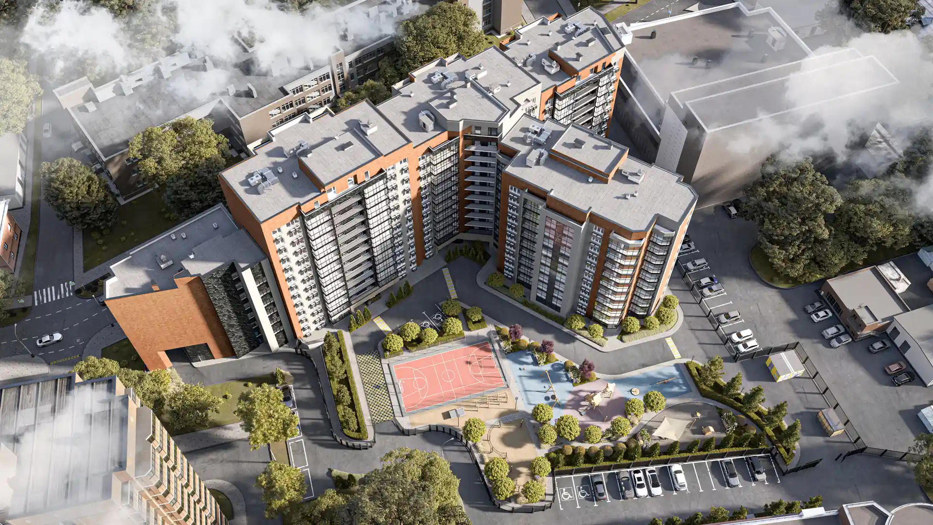 На территории жилого комплекса созданы детские и спортивные площадки, а также места для отдыха. Благоустройство включает детскую площадку из эко материалов, площадки для футбола, баскетбола и воркаута, а также зоны для спокойного отдыха, где размещены редкие виды растений и деревьев. Также предусмотрено ландшафтное озеленение «4 сезона».