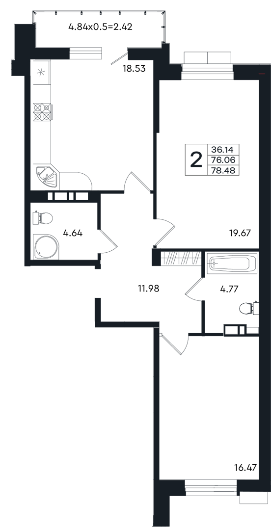 47.87 - 107.48 м²