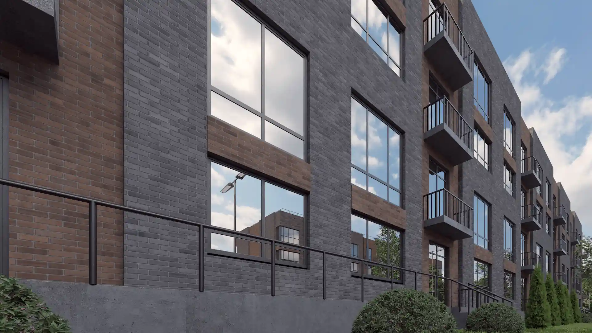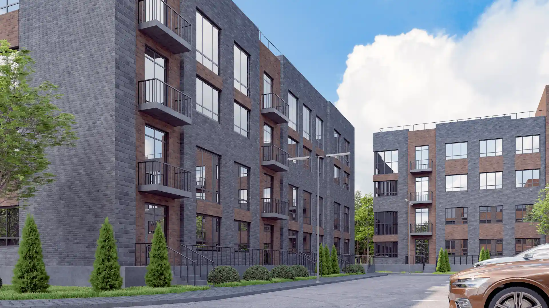 В комплексе будет три монолитно-кирпичных корпуса высотой 4 этажа. Высота потолков в квартирах составляет 2,87 метра. Все квартиры будут предлагаться с предчистовой отделкой, что дает возможность жильцам настроить свои жилые пространства по своему вкусу.