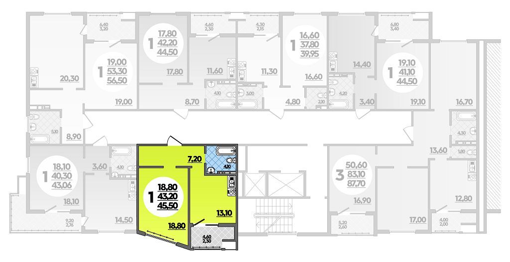 40.58 - 87.7 м²