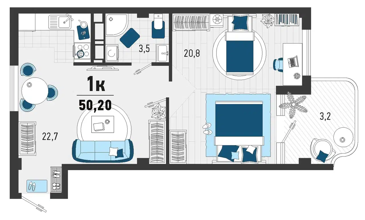 20.9 - 63.6 м²