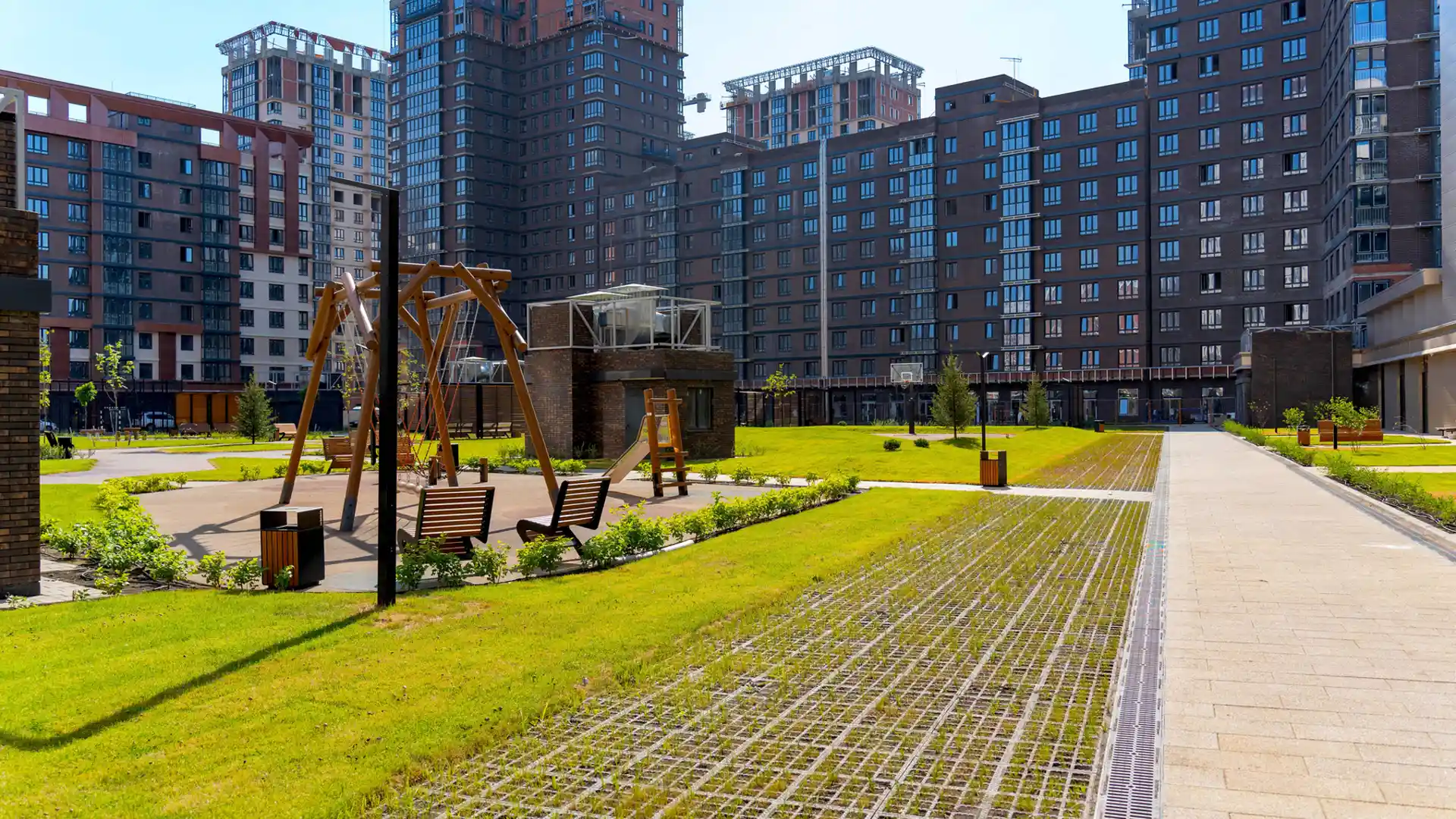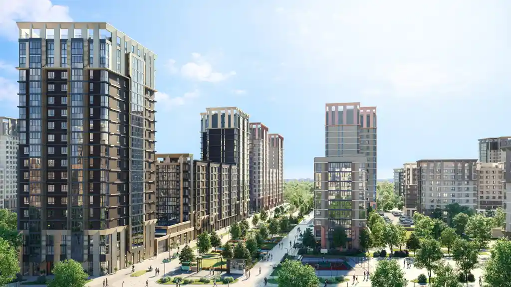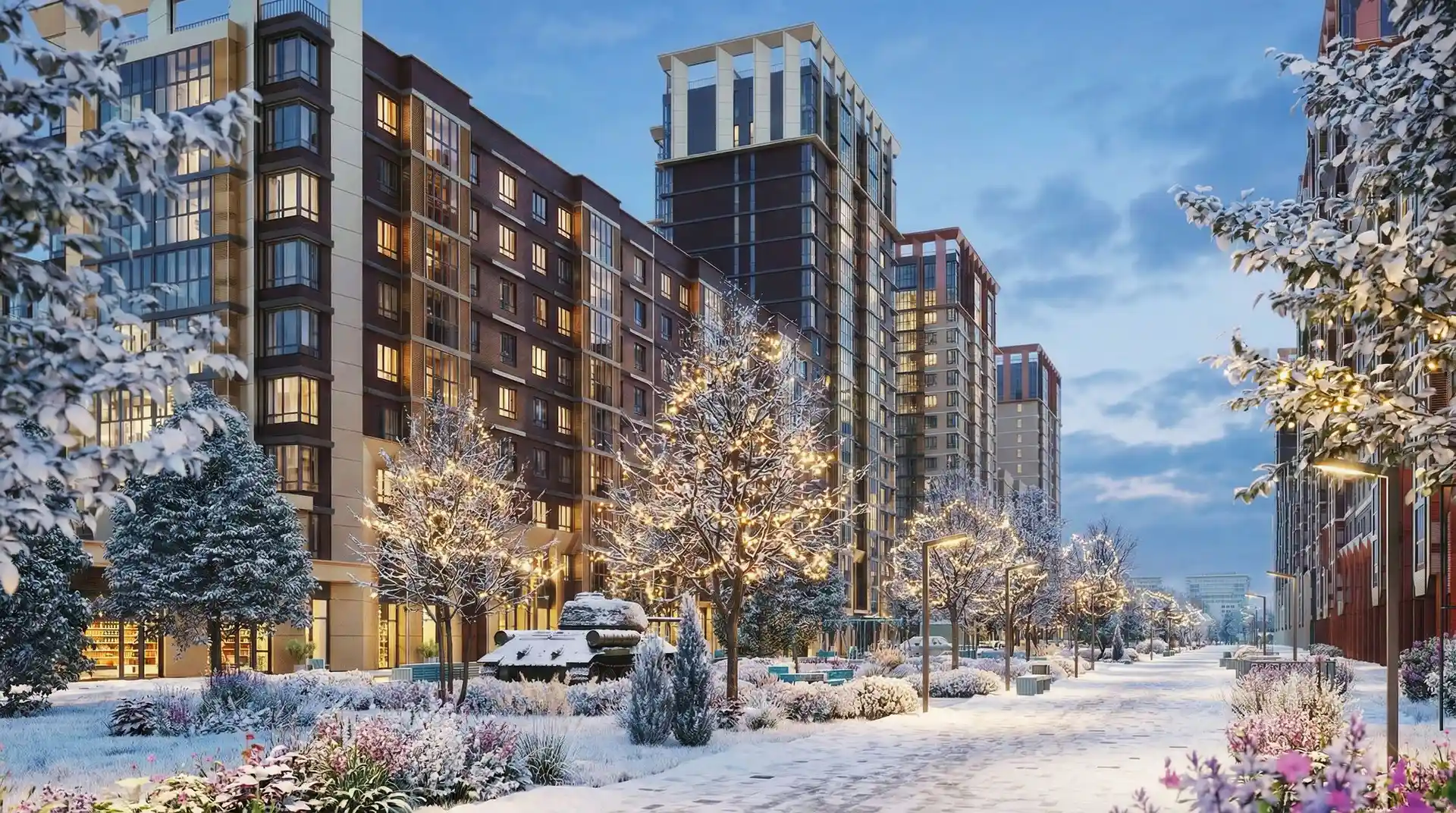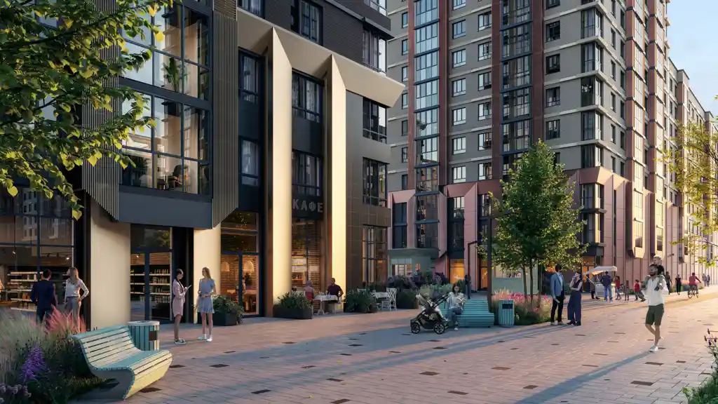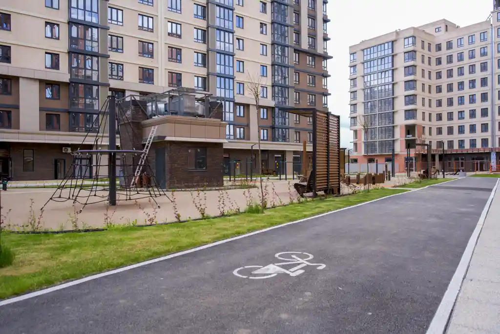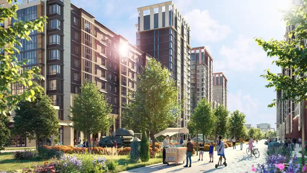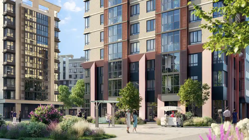 В проекте представлены разнообразные планировки: от студий 22 м² до просторных трехкомнатных квартир площадью до 101 м² с высотой потолков до 3 метров. Квартиры передаются с вариантами отделки на выбор: предчистовой или под ключ. Инфраструктура микрорайона включает 4 детских сада и школу на 1550 мест, коммерческие помещения на первых этажах, а также благоустроенную территорию с закрытыми дворами, детскими и спортивными площадками, пешеходным бульваром с фонтаном. Транспортная доступность обеспечивается автобусными маршрутами, на машине до центра города можно добраться примерно за 40 минут.