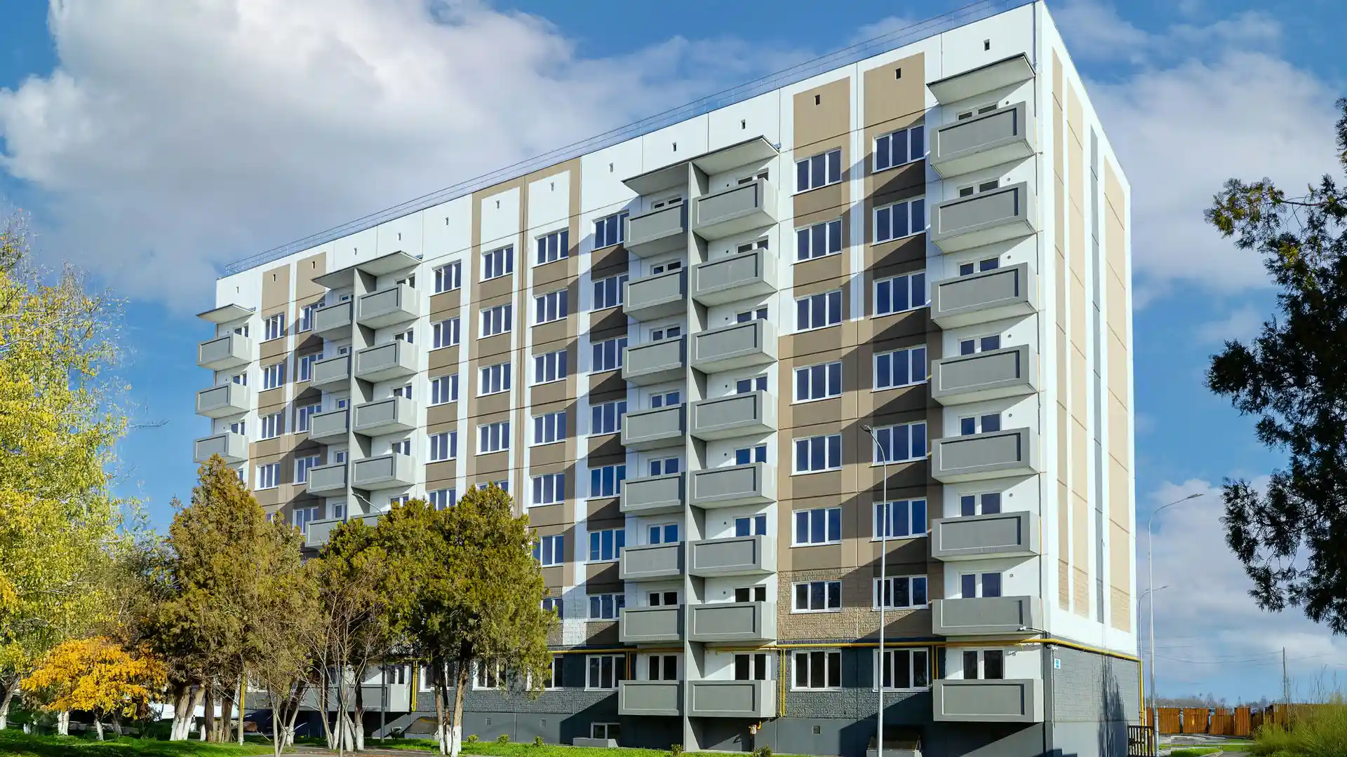 В здании предусмотрено 80 квартир с чистовой отделкой — это позволяет новосёлам сразу заселиться и начать обустраивать быт без дополнительных вложений в ремонт. Высота потолков составляет 2,5 м: пространство ощущается достаточно просторным, при этом планировка остаётся компактной и функциональной.