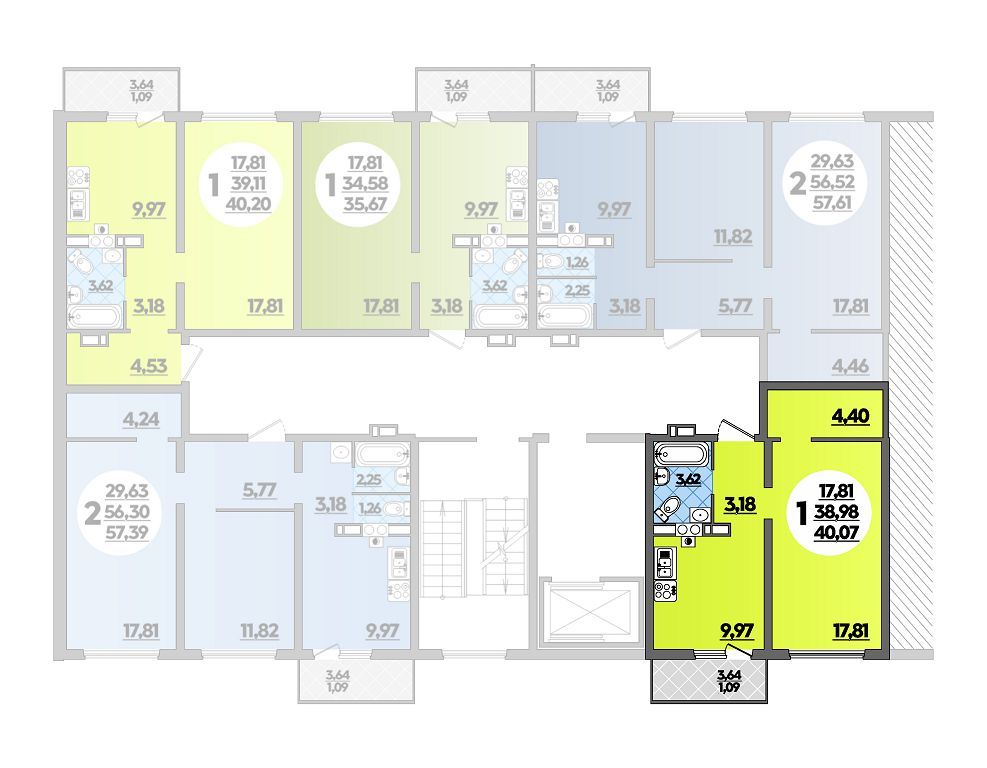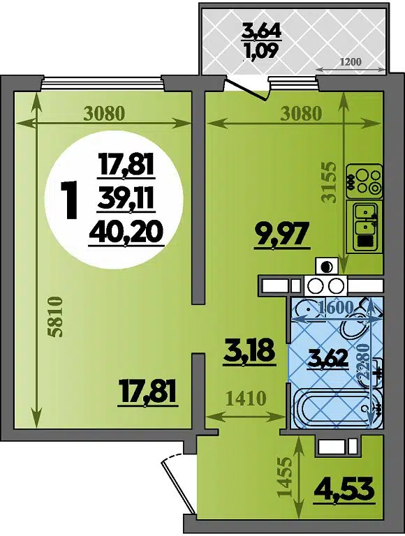 40.07 - 40.2 м²