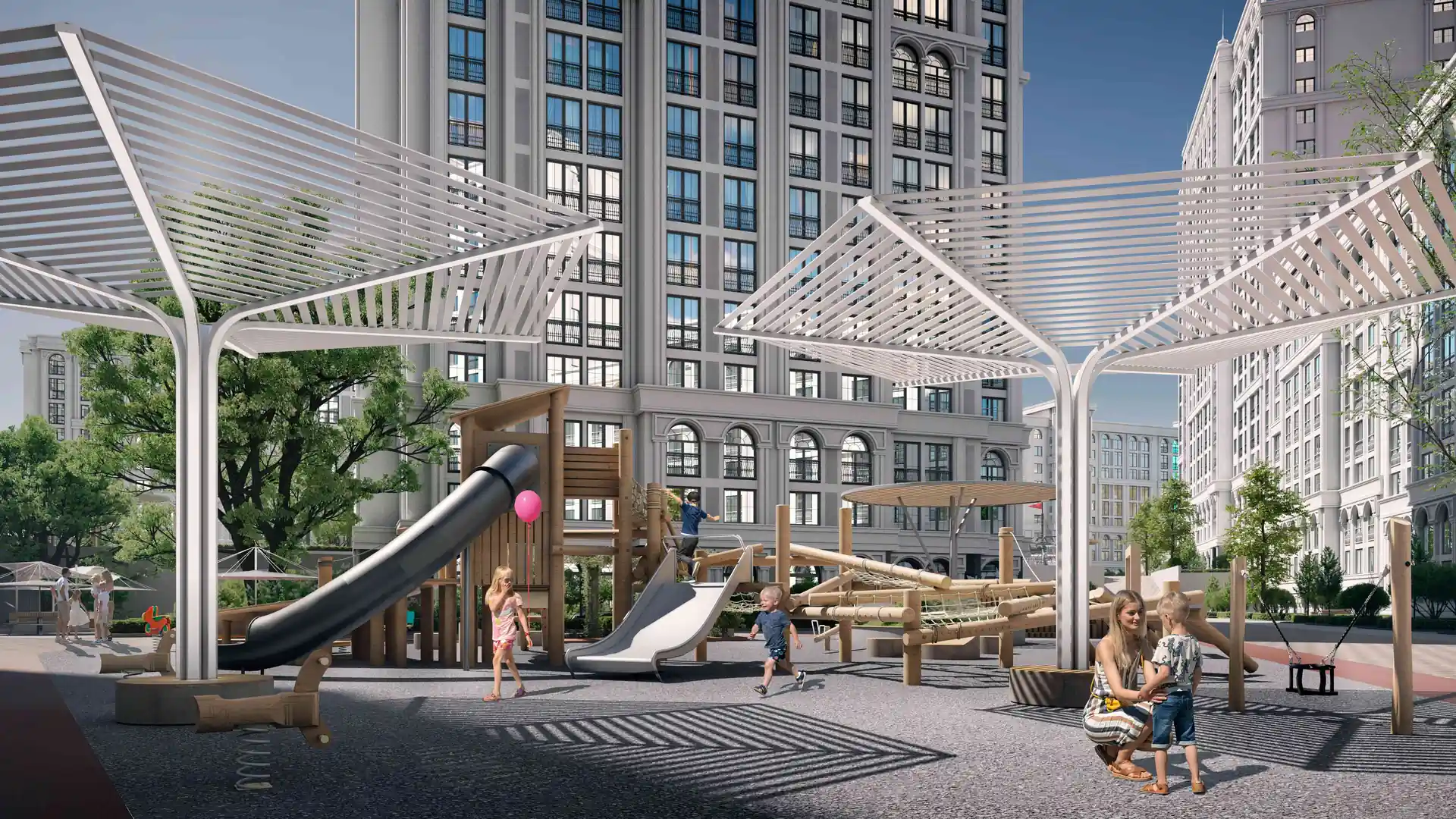 На территории ЖК предусмотрена разнообразная инфраструктура, которая включает детские и спортивные площадки, места для отдыха и два бассейна. Открытые бассейны общей площадью 811 м² позволят жителям наслаждаться водными процедурами в любую погоду, даже во время штормов на море. Первый бассейн, с глубиной от 0,5 до 1,5 м, идеально подходит для самых маленьких жителей, предоставляя безопасные условия для игры и обучения плаванию. Второй бассейн отлично подойдет для длинных заплывов и спортивного фитнеса с глубиной 1,5 м.