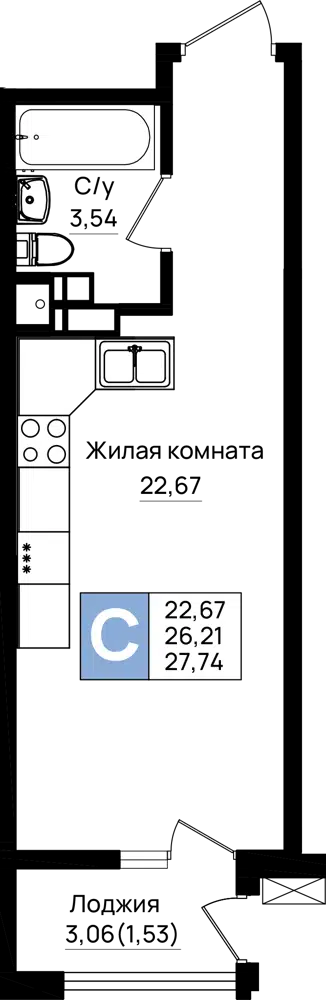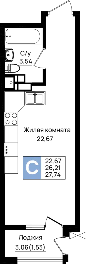 27.74 - 120.38 м²