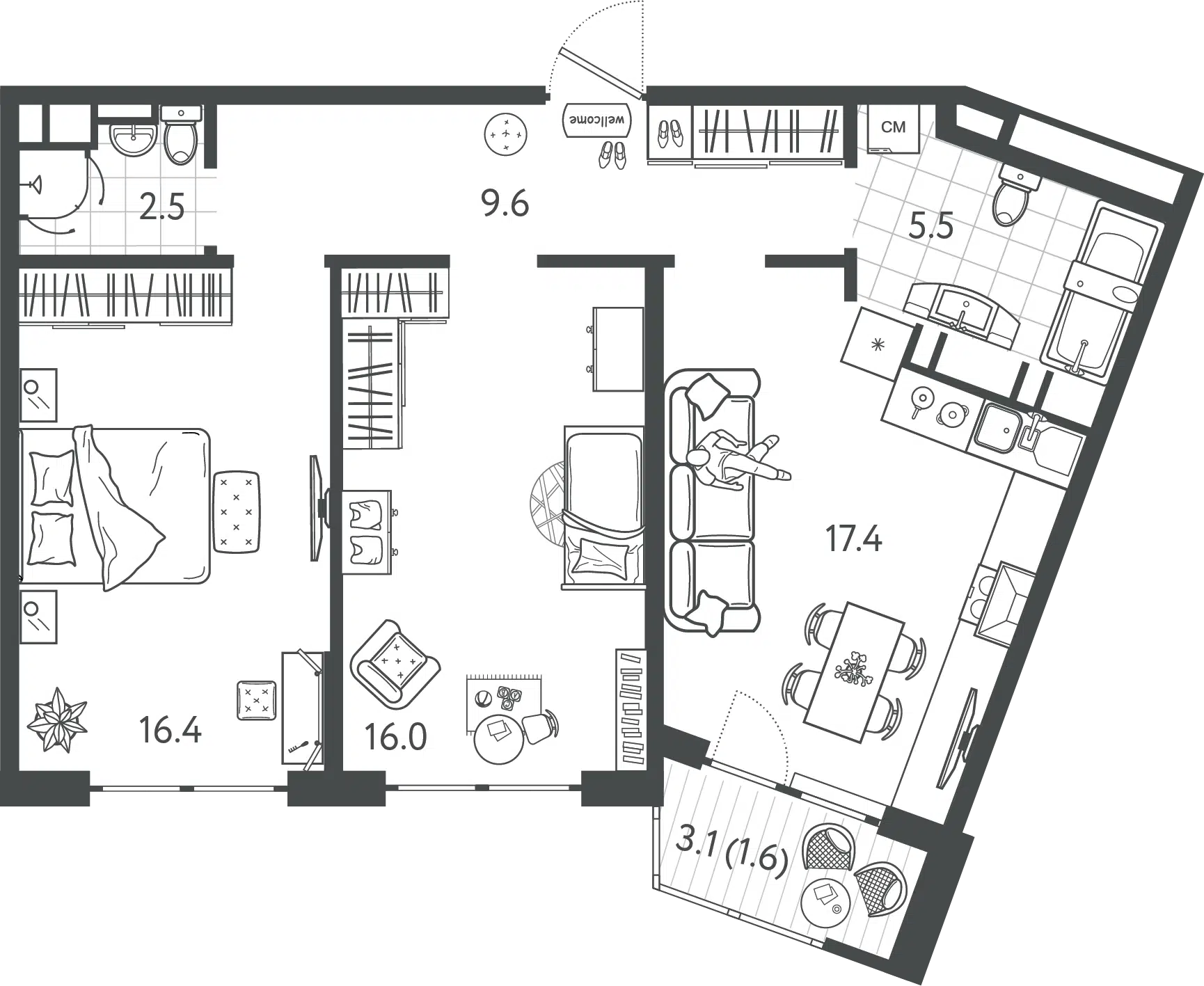 24.6 - 129.35 м²