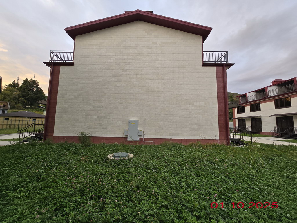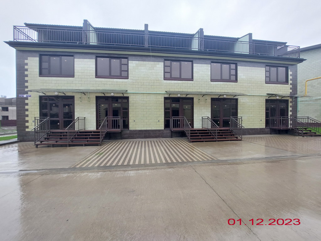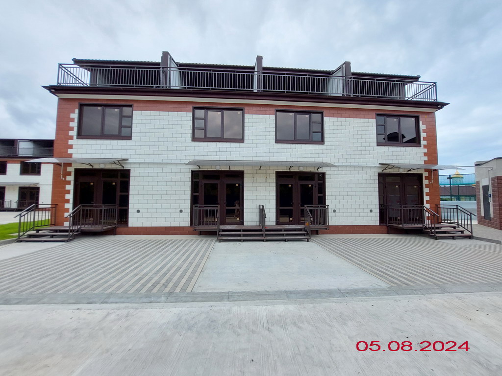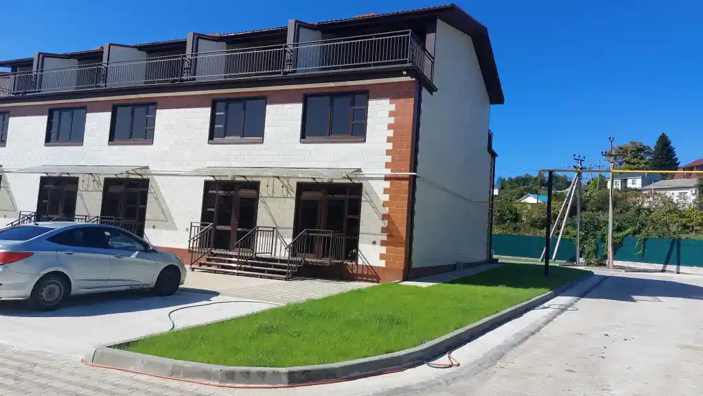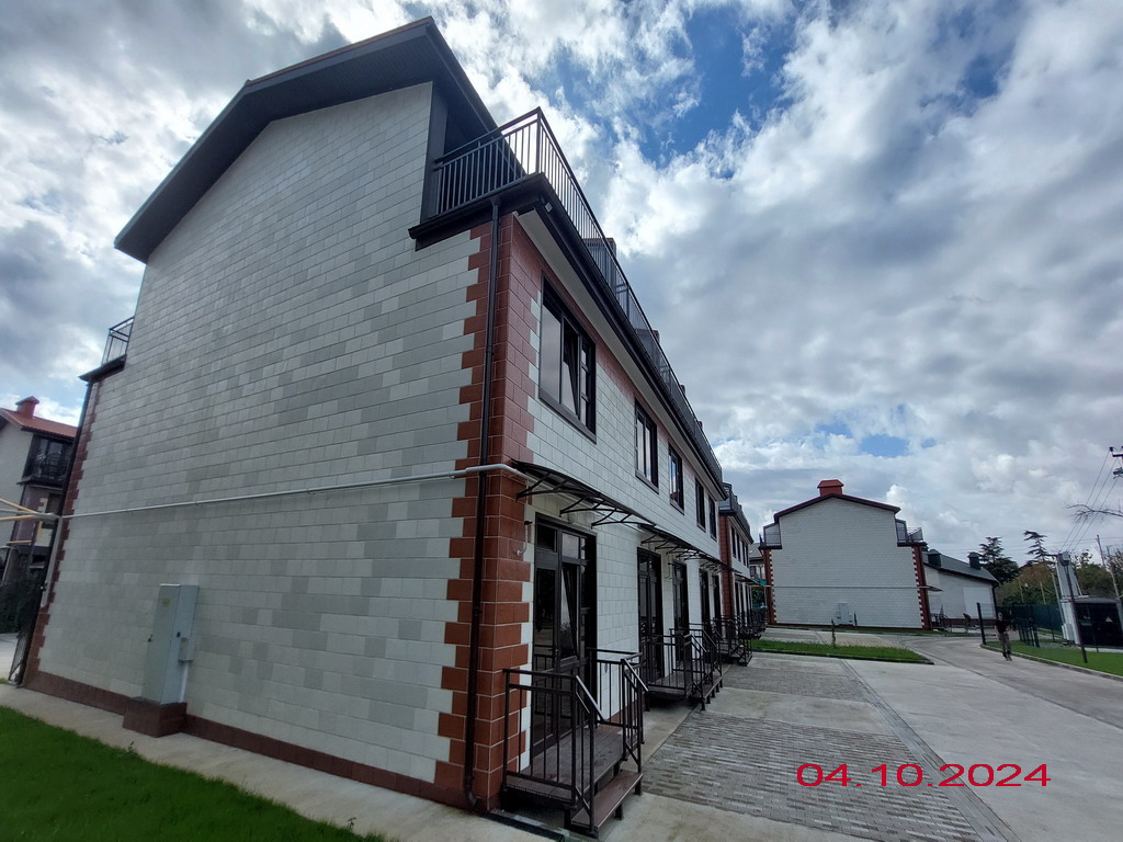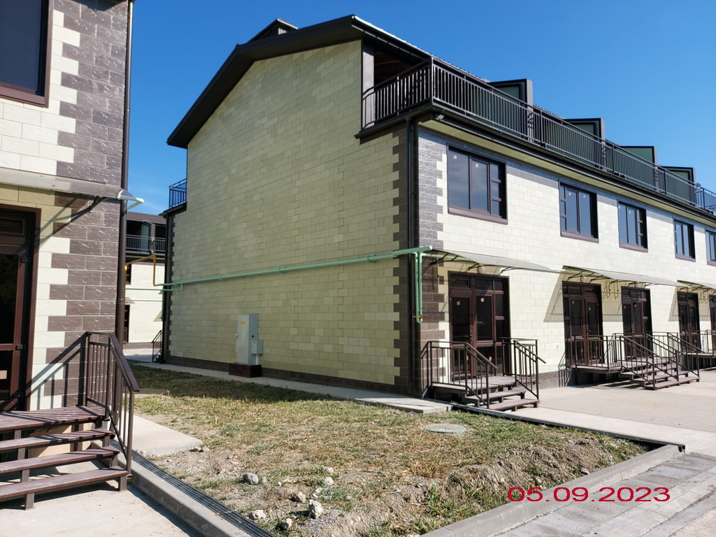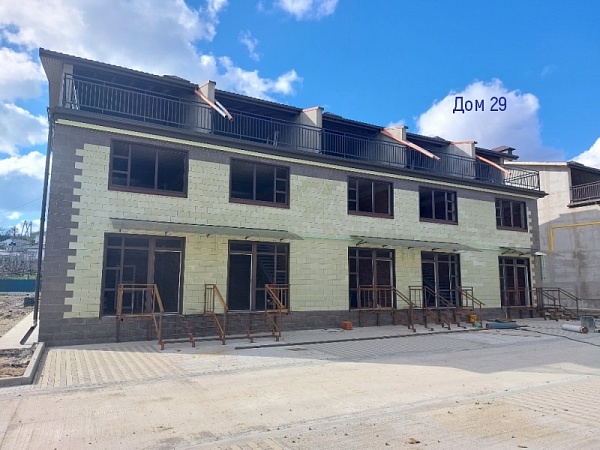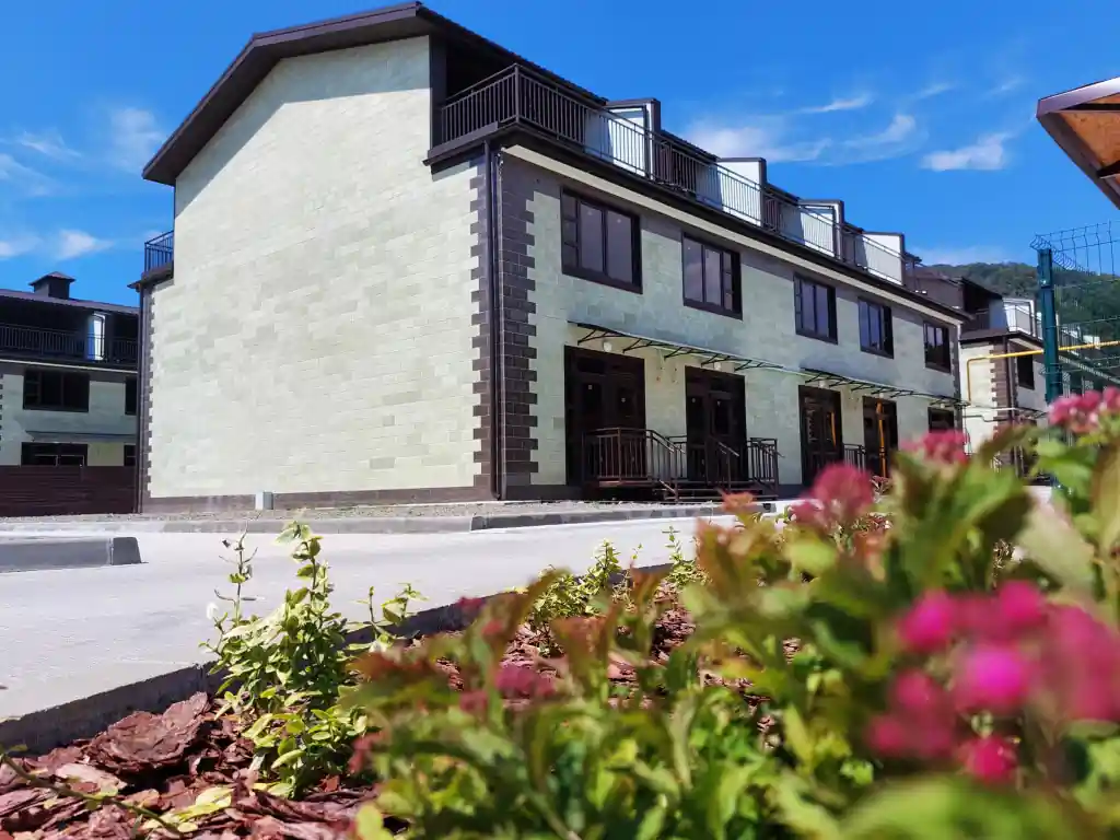 Территория комплекса огорожена и благоустроена. На ней организованы цветочные клумбы, высажены плодовые и вечнозеленые деревья. В комплексе предусмотрены зеленые эко-парковки и пешеходная аллея. У каждого таунхауса имеется парковочное место.