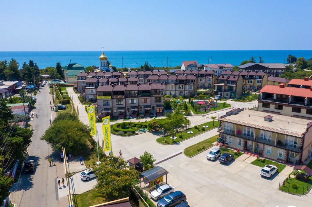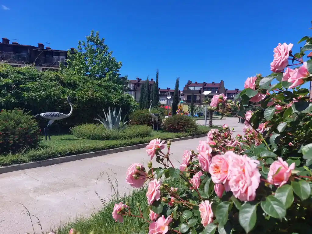 Жилой комплекс находится всего в 100 метрах от берега моря. Это прекрасное расположение обеспечивает равнинную местность, чистейшее море и широкий пляж. Жилой район тихий и уютный, что делает его привлекательным для жизни на курорте.
