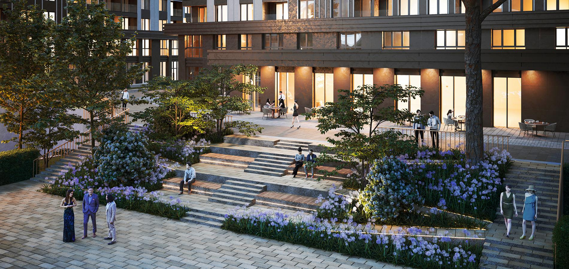 На территории жилого комплекса обустроены детские и спортивные площадки, а также места для отдыха и площадки для выгула собак. Кроме того, предусмотрены коммерческие объекты и офисные помещения.