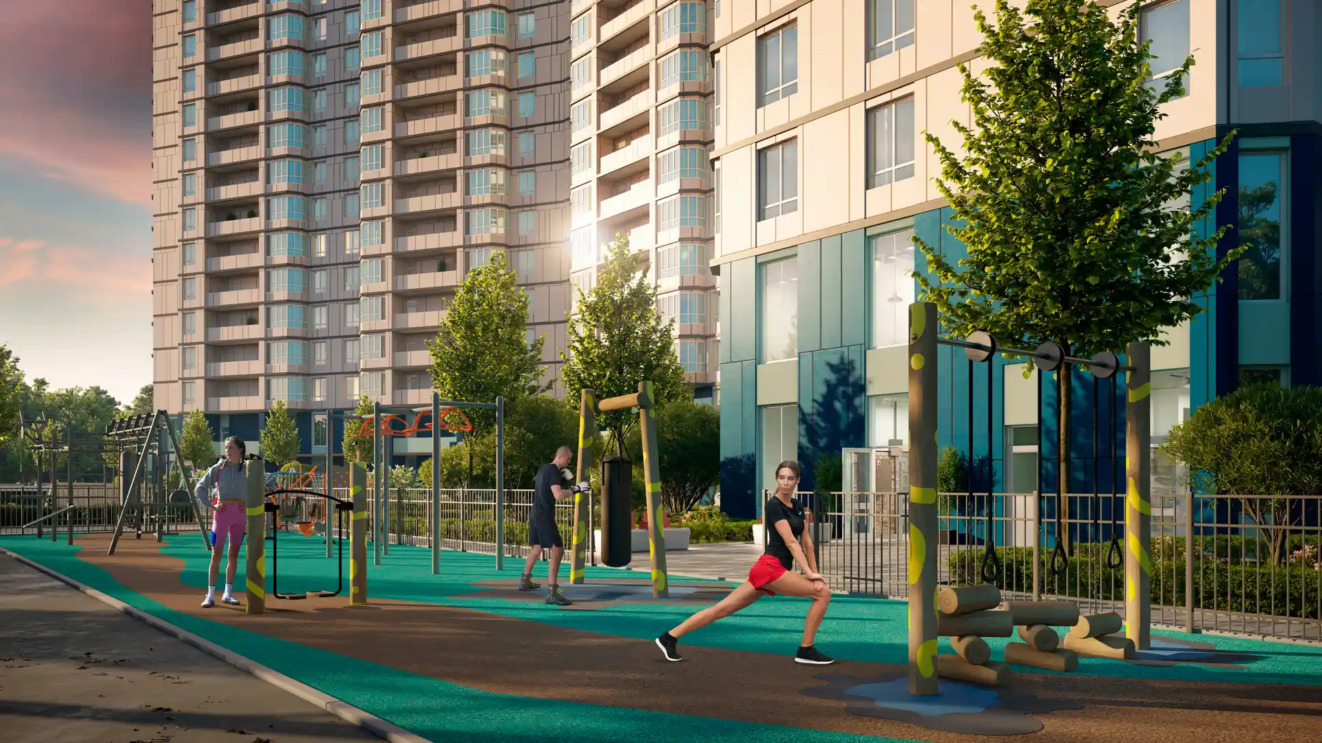 На территории жилого комплекса расположены детский сад, детские и спортивные площадки, а также зоны отдыха для жителей. Также предусмотрены коммерческие объекты и офисные помещения. Парковка организована с отдельной многоуровневой частью и гостевой зоной.