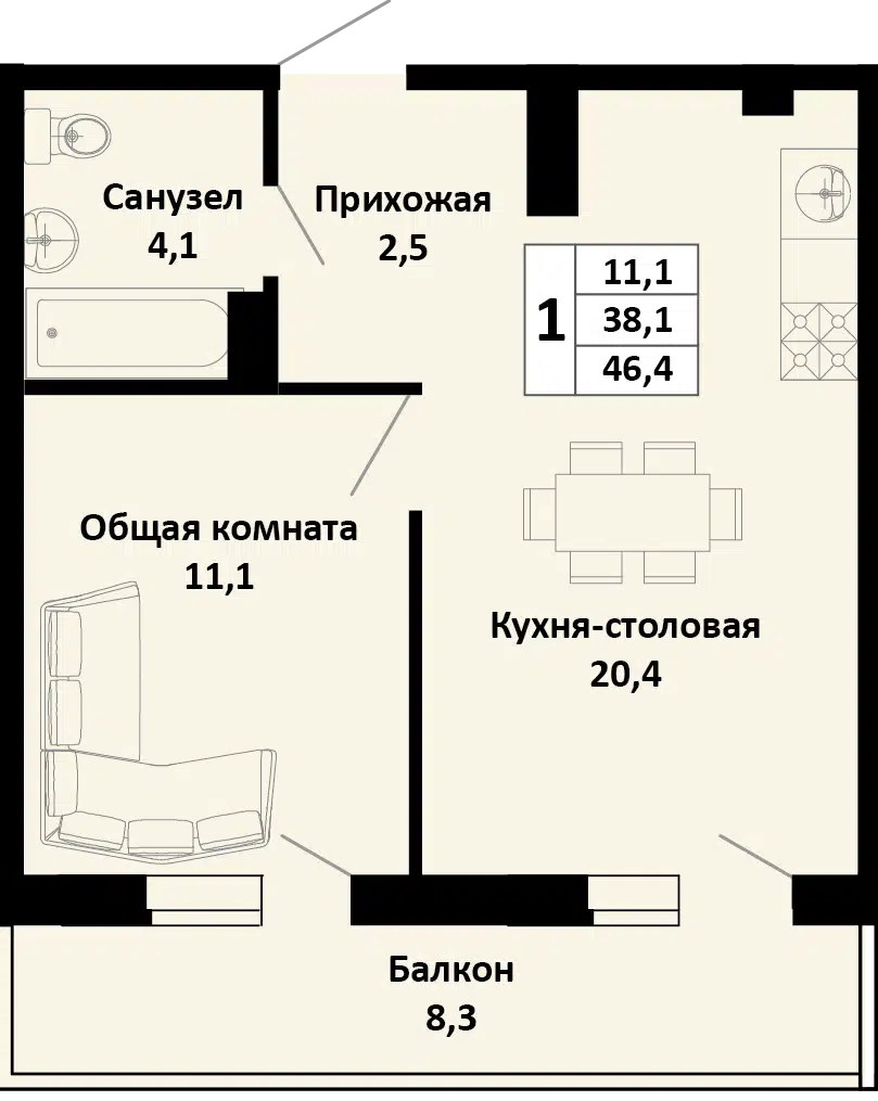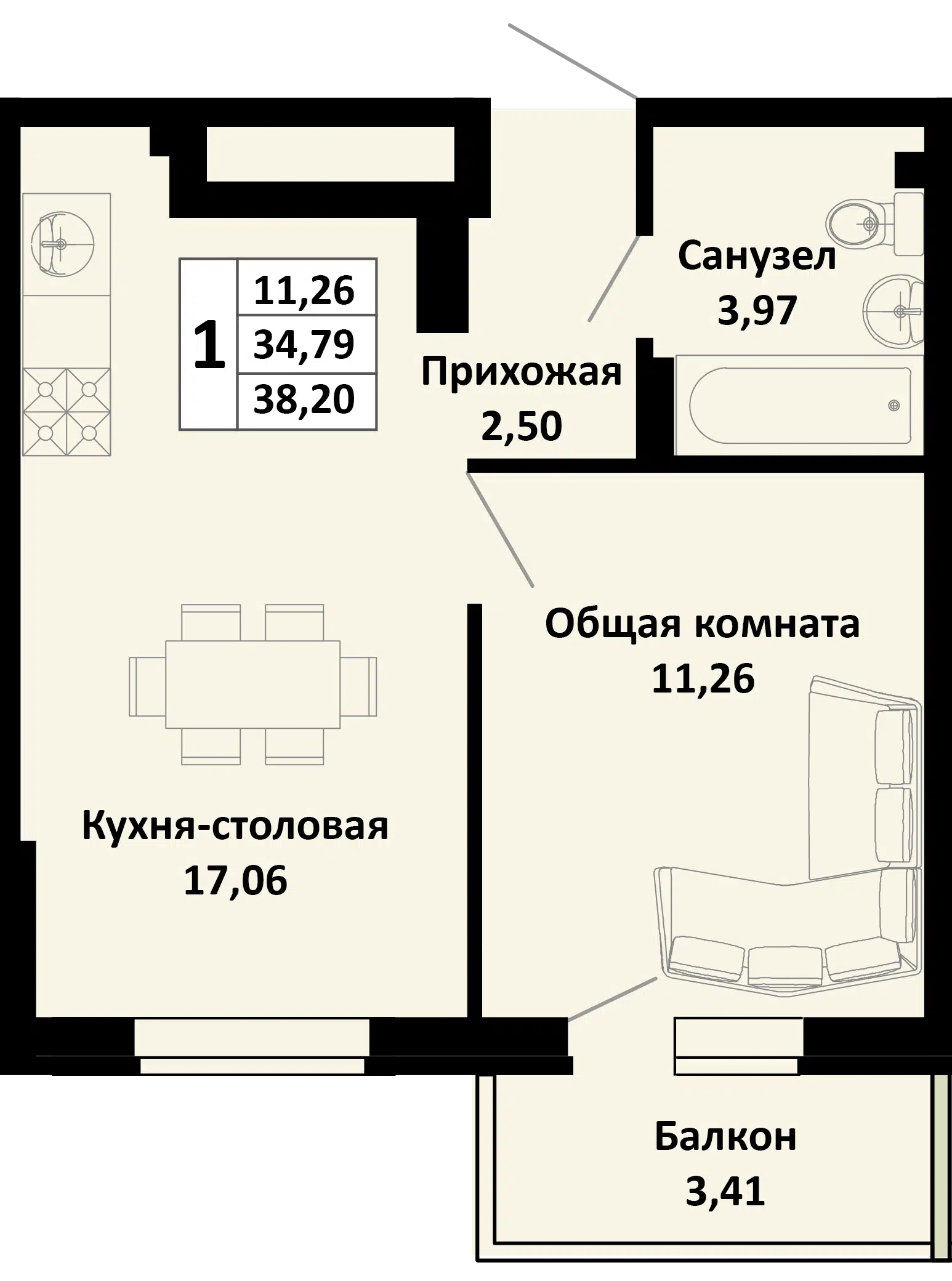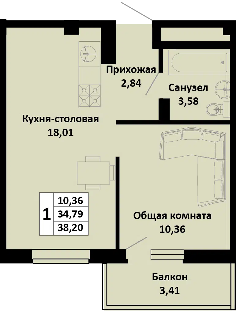 36.1 - 44.06 м²