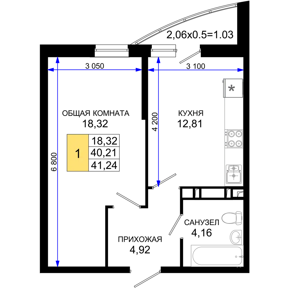41.45 - 41.45 м²