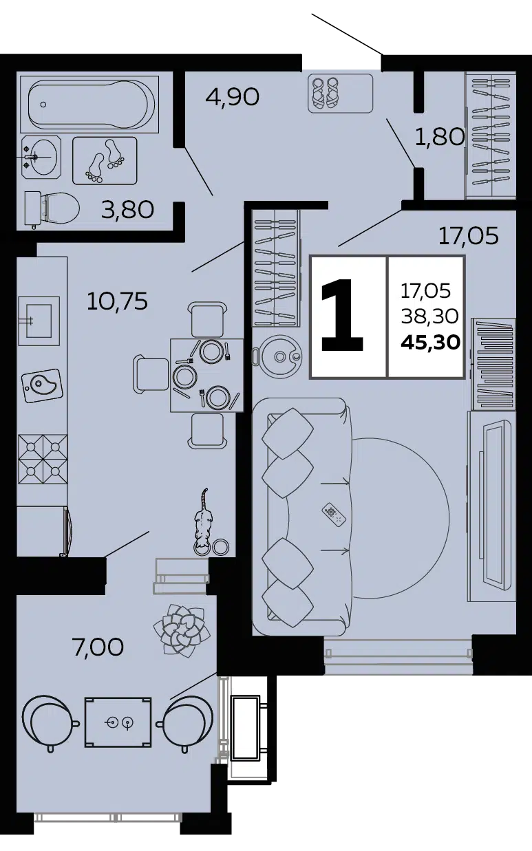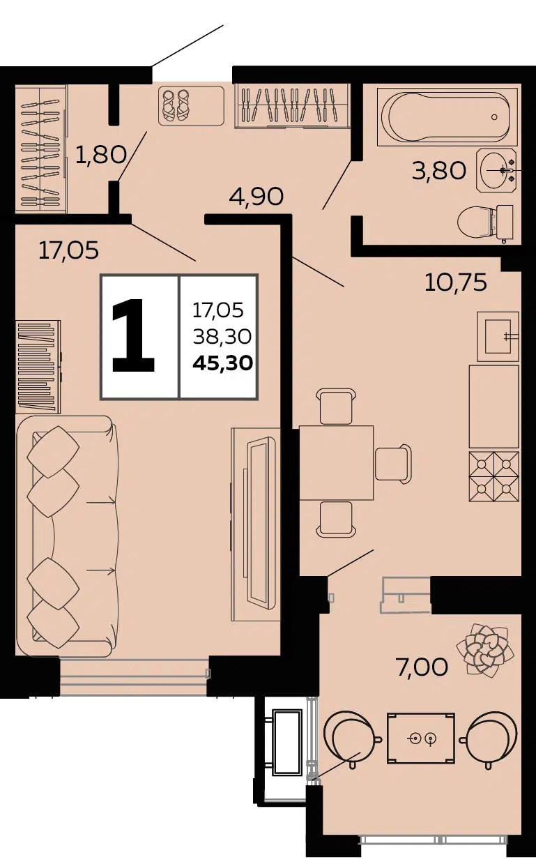 45.3 - 83.2 м²