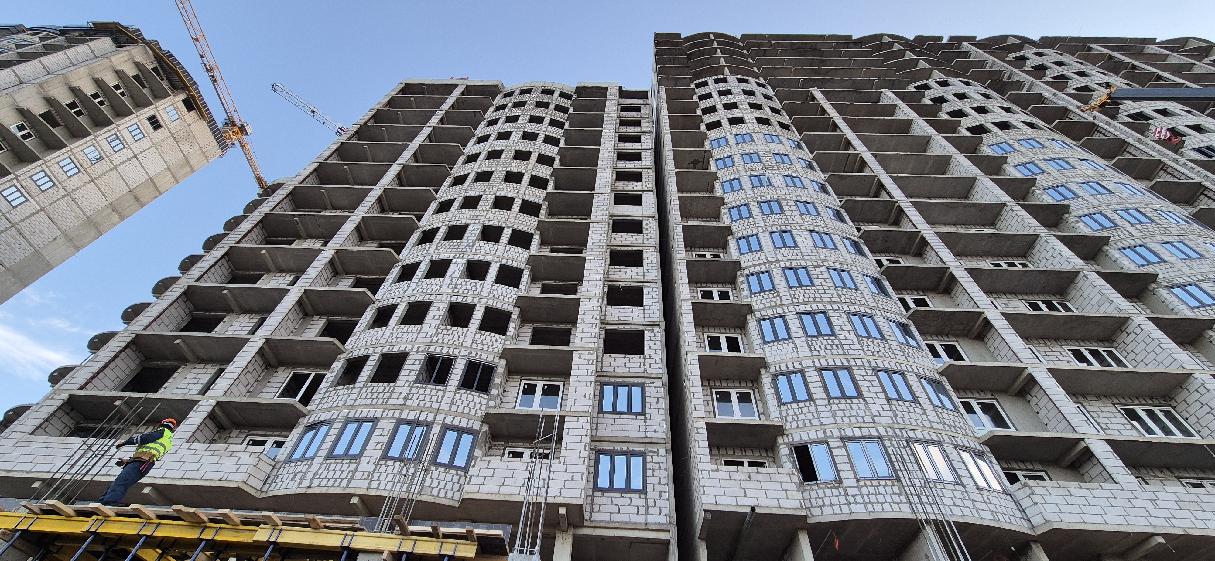 В комплексе представлены два монолитно-кирпичных корпуса, высота которых составляет 21 этаж. В каждом корпусе установлено от 10 до 13 лифтов, что обеспечивает удобный доступ на верхние этажи. Высота потолков в квартирах достигает 2,84 метра. Отделка предлагается в различных вариантах: без отделки, в предчистовом или черновом варианте.