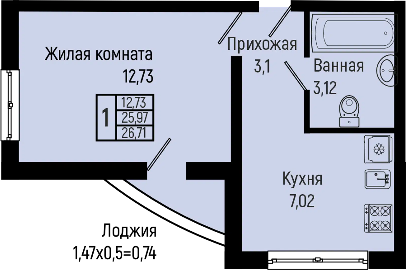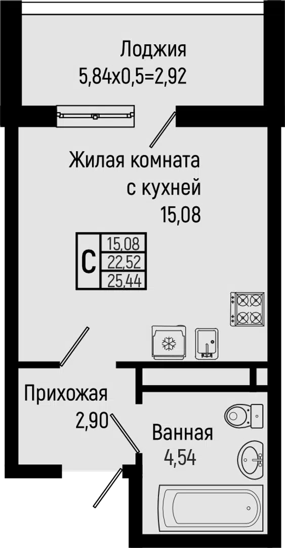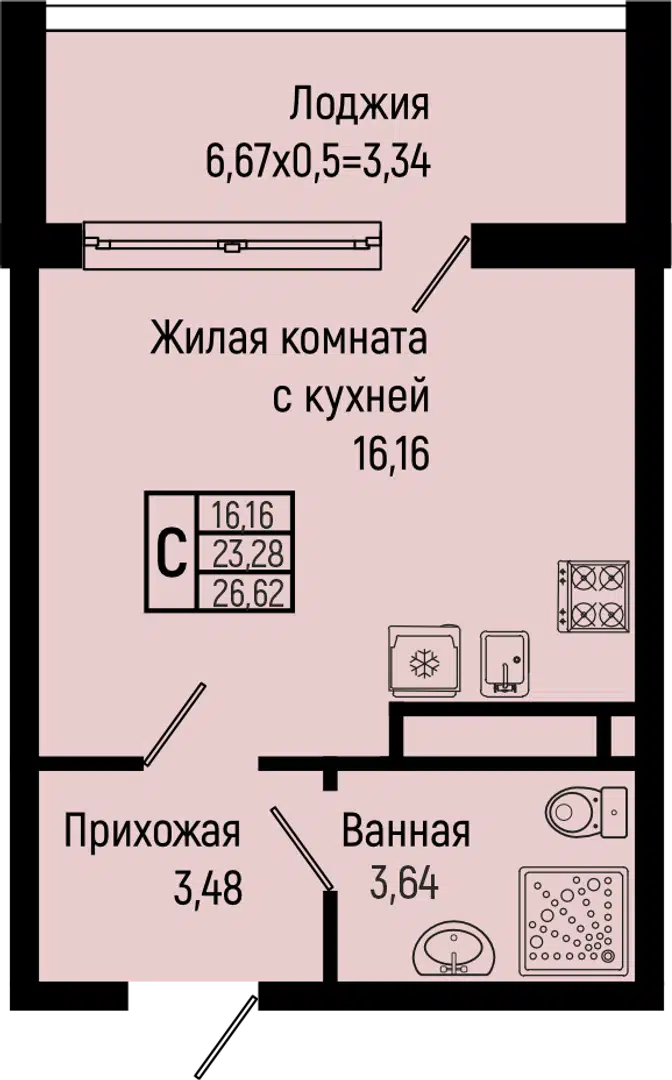 16.94 - 44.66 м²