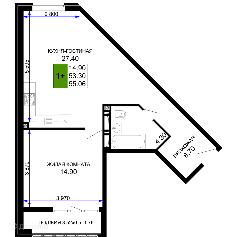 56.75 - 56.75 м²