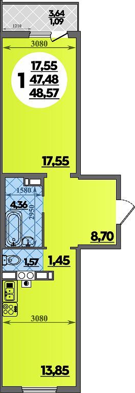 35.67 - 54.24 м²