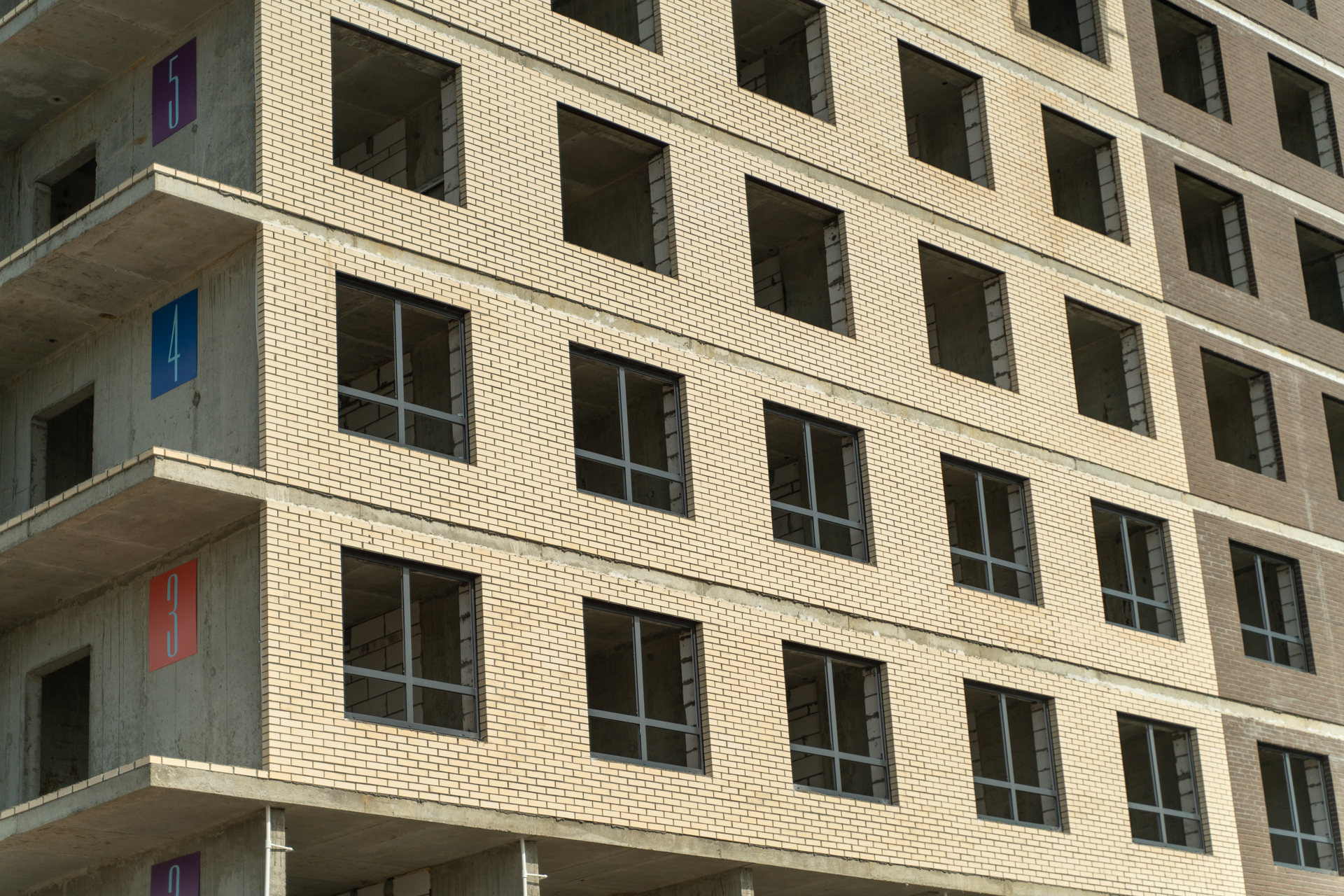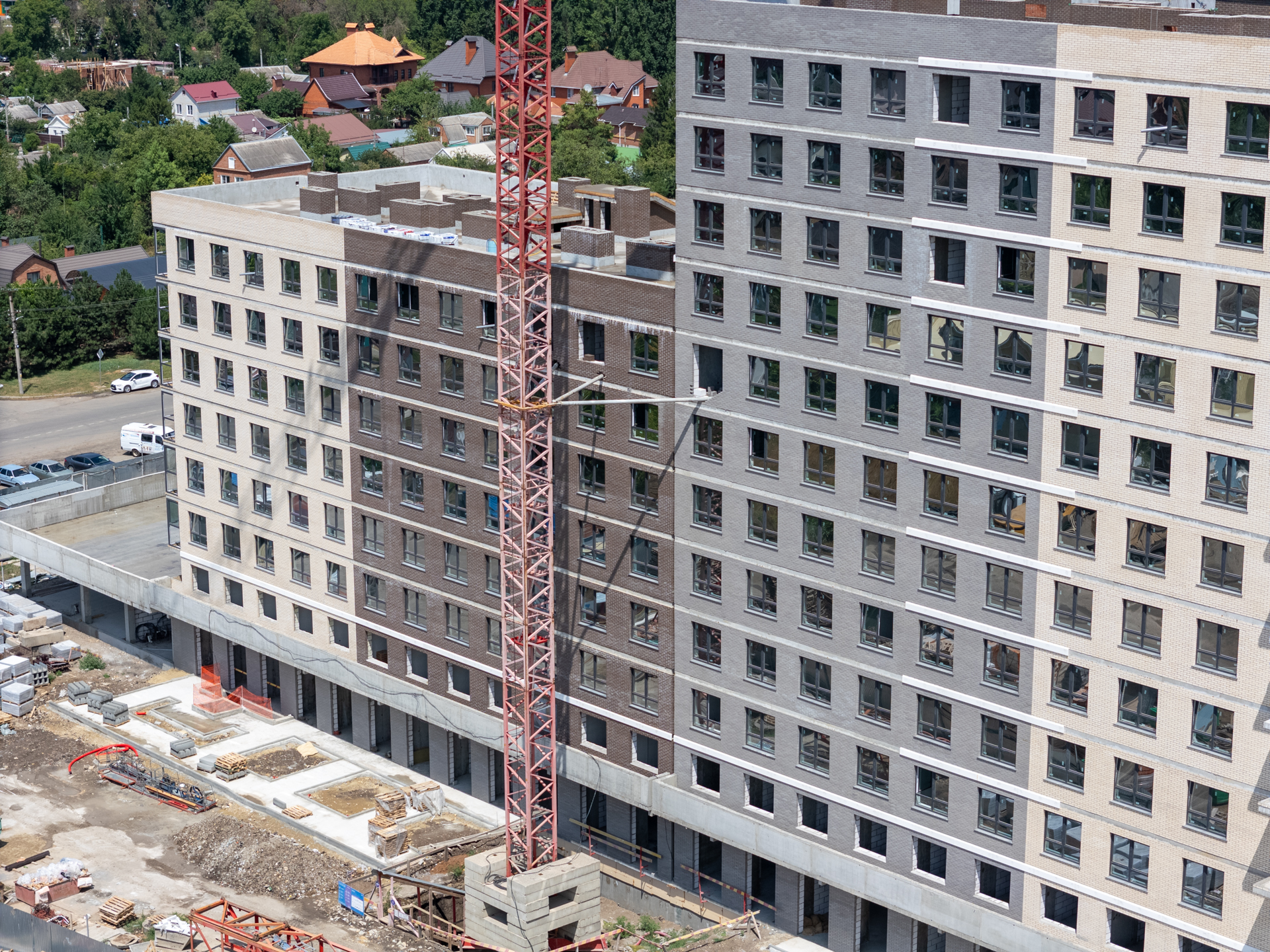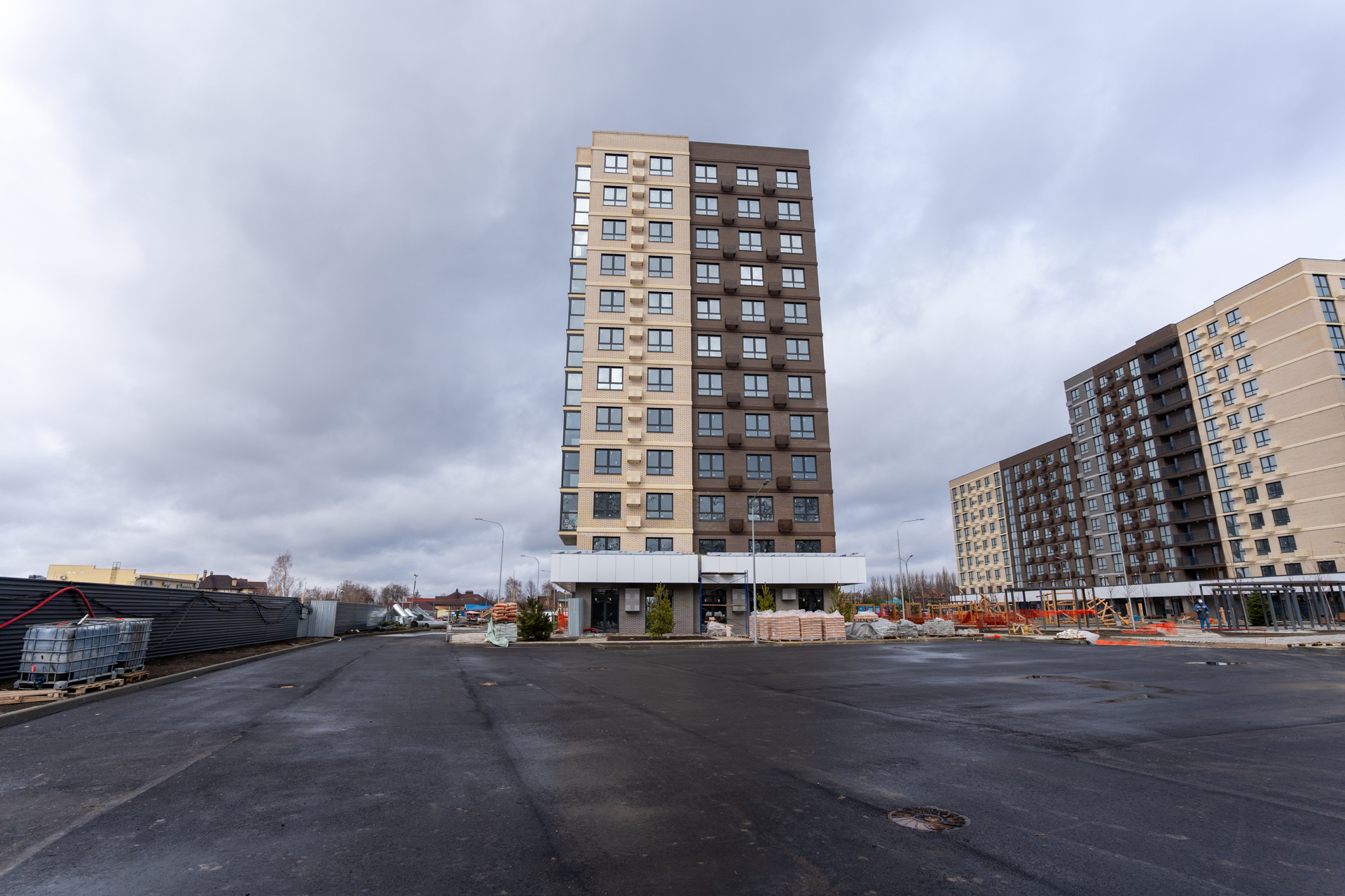 Комплекс состоит из нескольких монолитно‑кирпичных корпусов высотой от 16 до 25 этажей, выстроенных по принципу квартальной застройки. Архитектурный облик отличается лаконичностью и современностью: фасады облицованы керамогранитными панелями в светлых бежево‑серых тонах с акцентами терракотового цвета, дополнены панорамным остеклением и чёткими геометрическими линиями. Благодаря ступенчатой композиции зданий из большинства квартир открываются виды на внутренний двор или близлежащие зелёные зоны, а большие окна с двухкамерными стеклопакетами обеспечивают отличную инсоляцию помещений и помогают сохранять тепло в холодное время года.