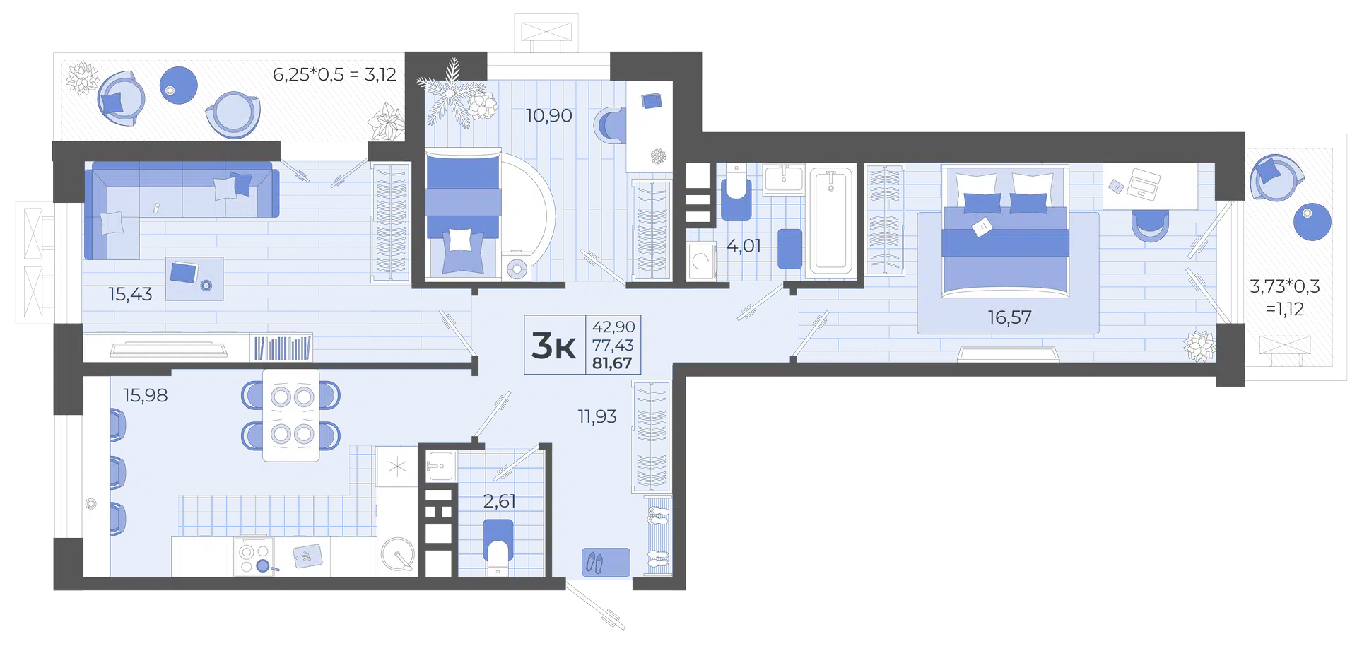 В ЖК «Высочество» представлено более 1 200 квартир различных форматов — от компактных студий площадью от 25,3 кв. м до просторных четырёхкомнатных вариантов до 98 кв. м. Высота потолков составляет 2,85 м, что создаёт ощущение простора и свободы даже в небольших помещениях. Среди планировок — варианты с кухнями‑гостиными, мастер‑спальнями с отдельными ванными комнатами и гардеробными, а также лоты с балконами и лоджиями. Жильё предлагается как с чистовой отделкой в нескольких дизайнерских стилях (скандинавский, минимализм, неоклассика), так и без отделки — для тех, кто планирует реализовать собственные идеи. В каждой квартире продумано зонирование пространства, предусмотрены ниши для встроенных шкафов и удобные зоны хранения.
