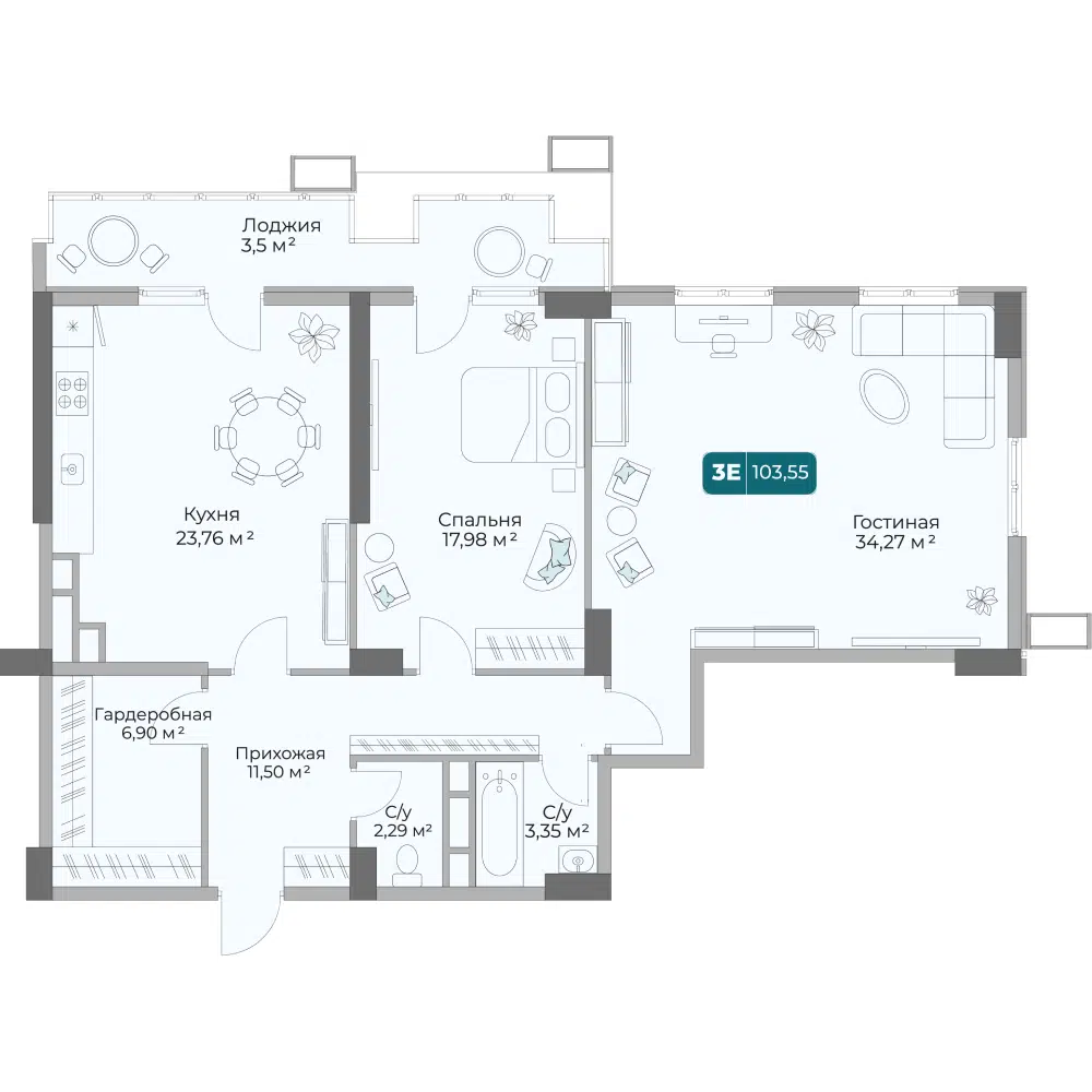 В комплексе предлагаются просторные 1, 2 и 3-хкомнатные квартиры, которые сдаются с предчистовой отделкой. Квартиры имеют оштукатуренные стены, стяжку пола и разводку электричества. Установлены входные металлические двери, радиаторы отопления и унитазы.