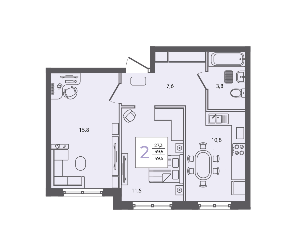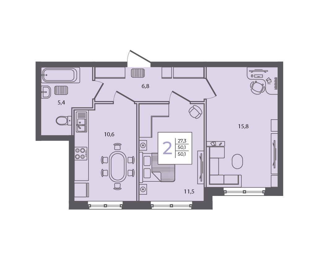 2-комнатная, 54.10 м²