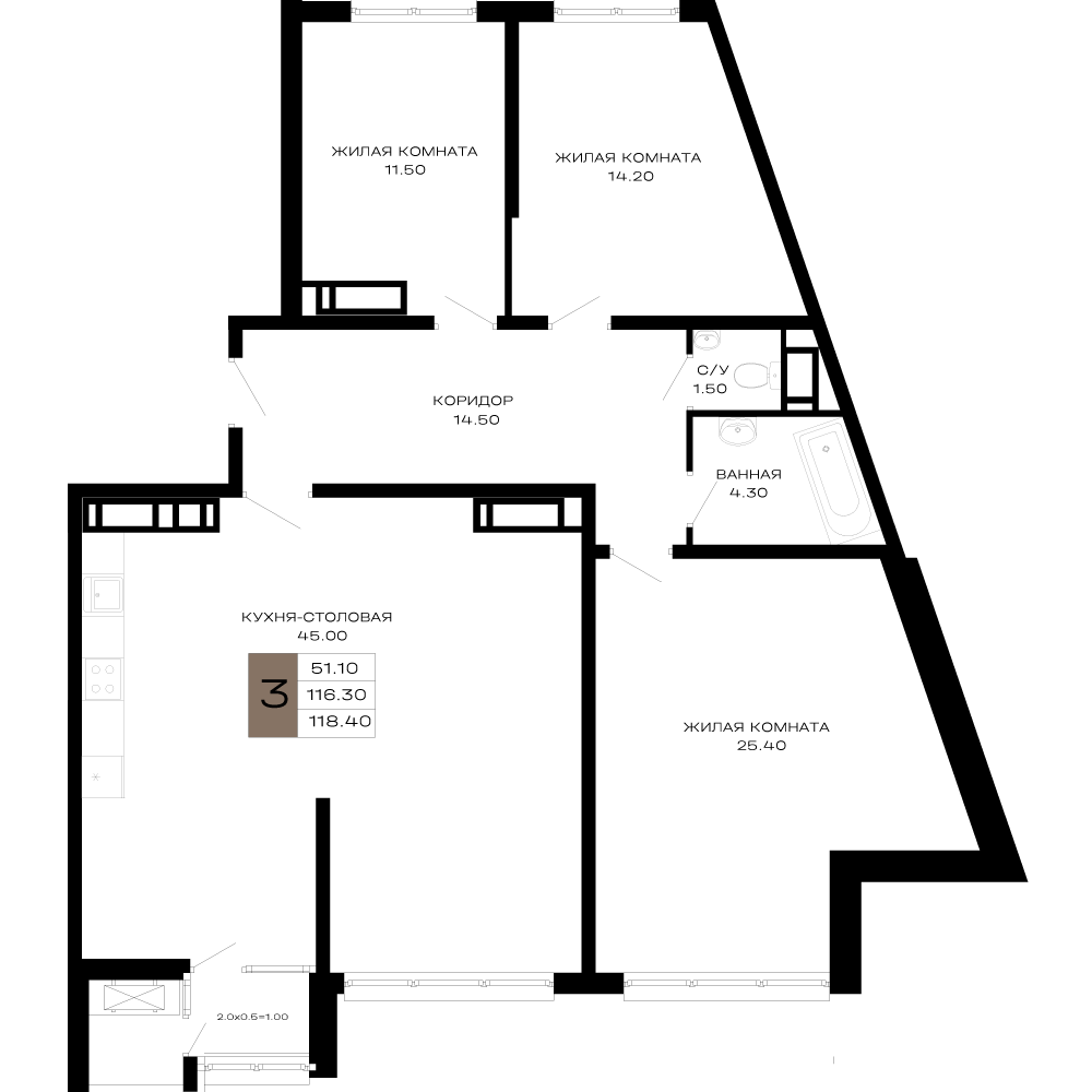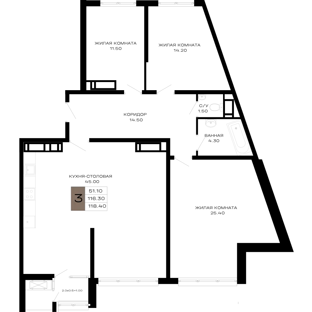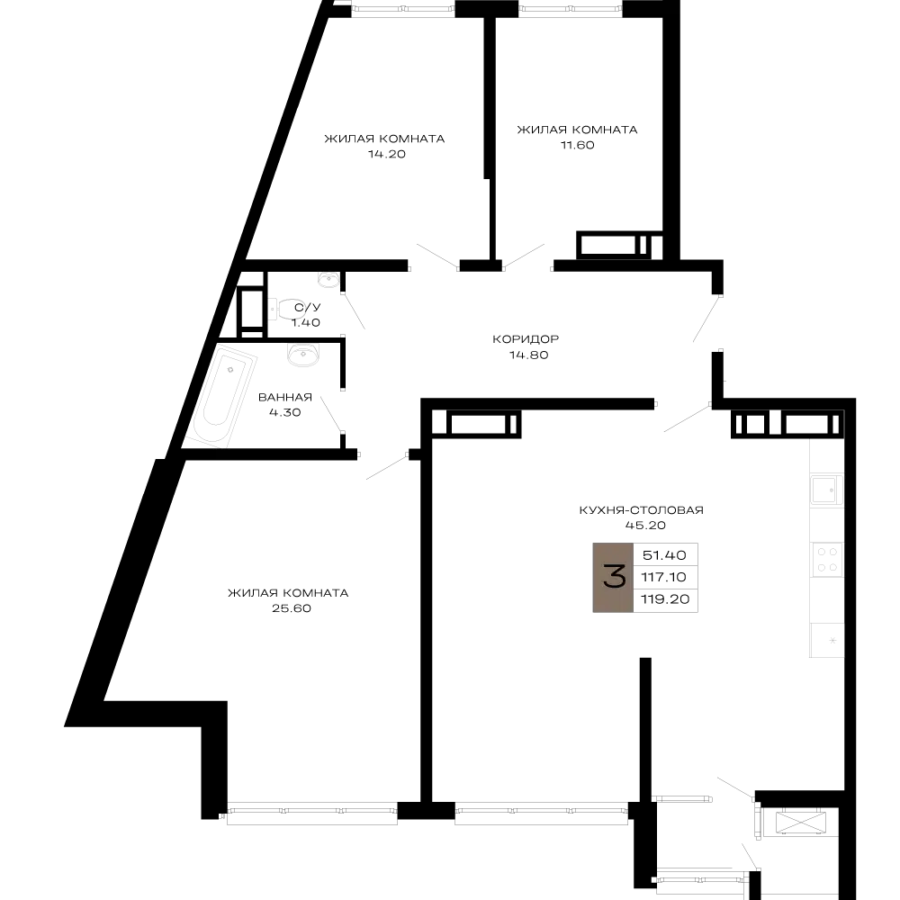 3-комнатная квартира, 83.67 м², 3 эт.