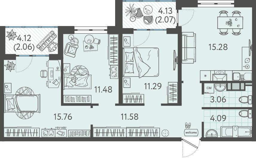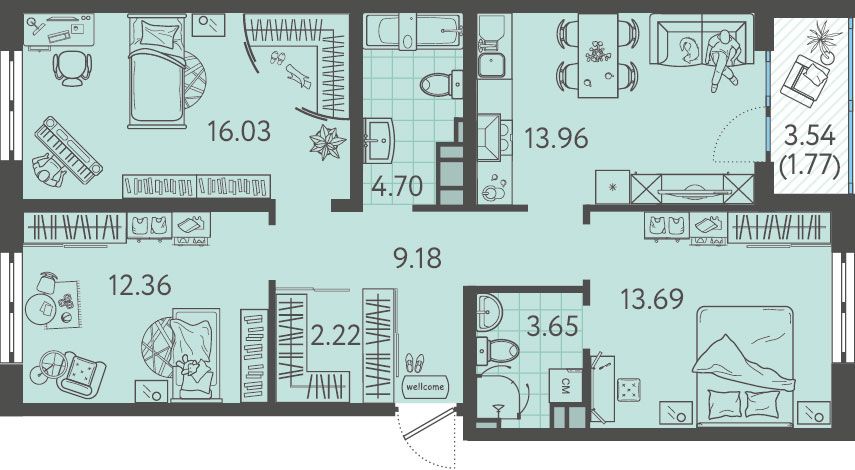 3-комнатная квартира, 83.43 м², 4 эт.