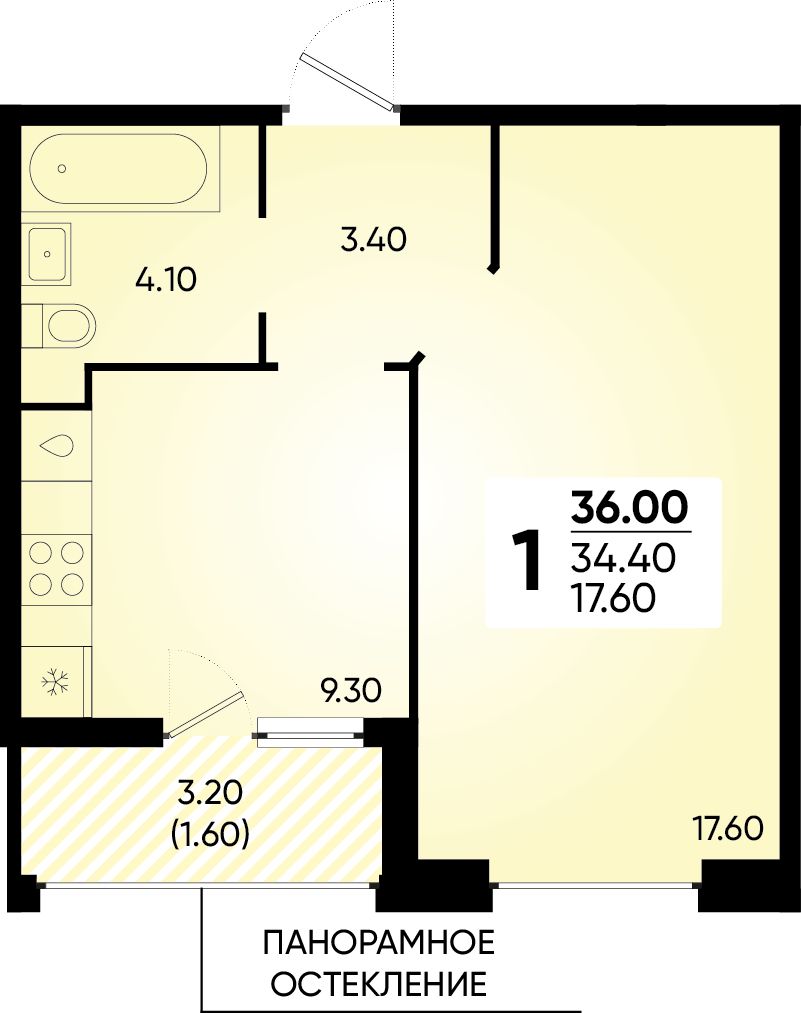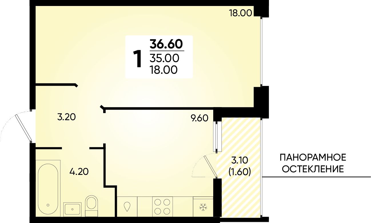 1-комнатная, 35.50 м²