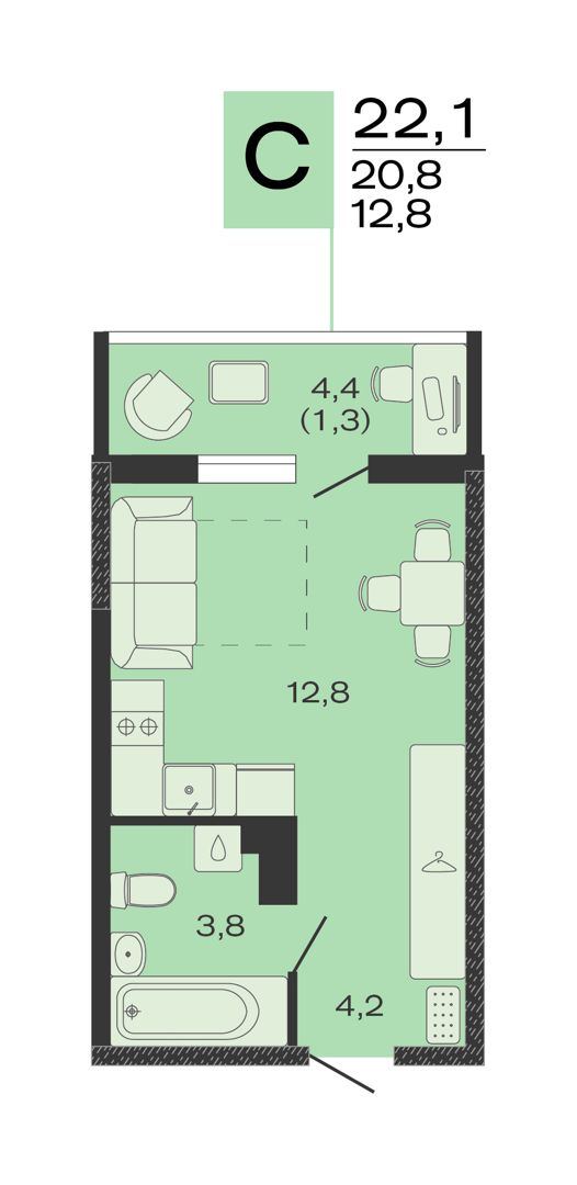 Студия, 17.70 м²