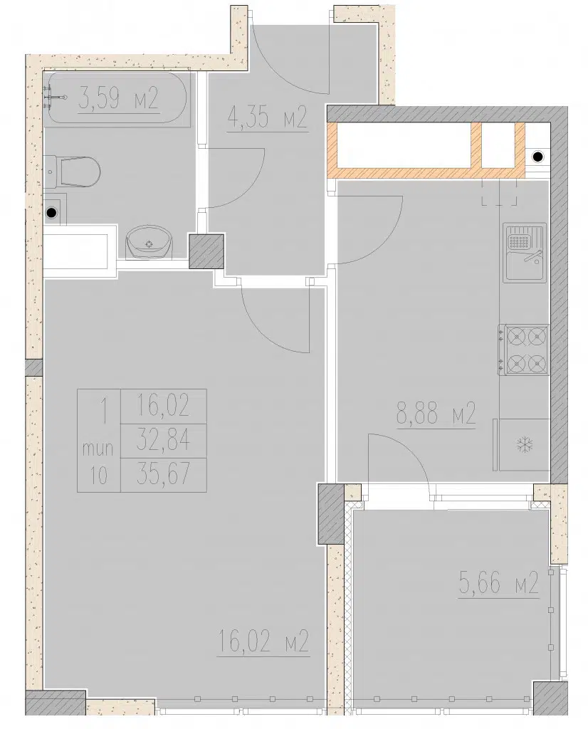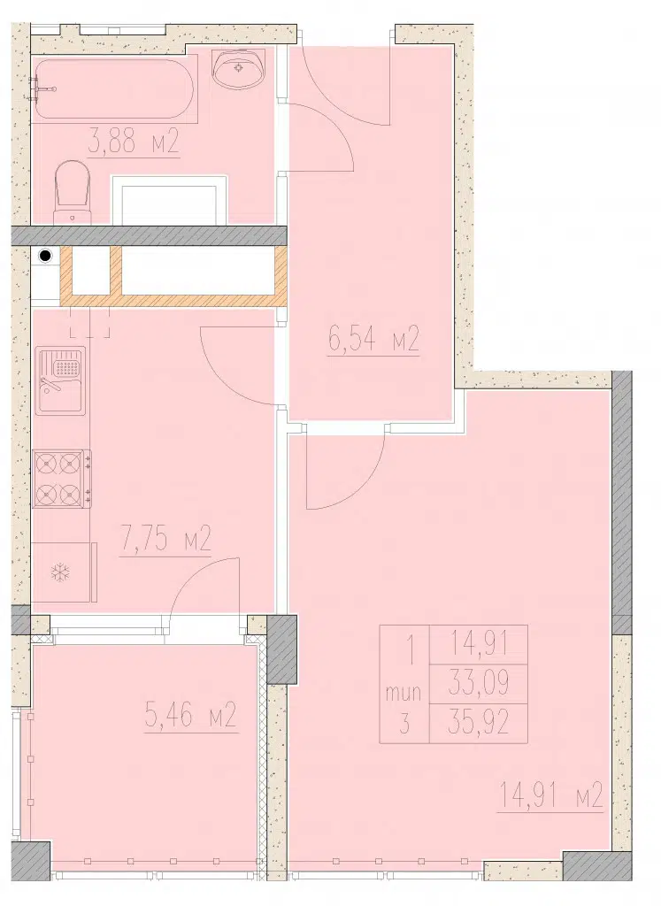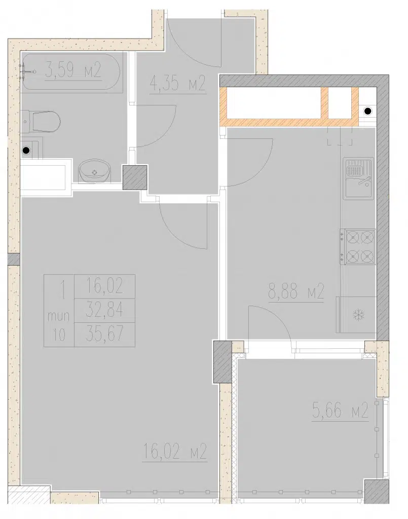 1-комнатная квартира, 40.14 м², 5 эт.