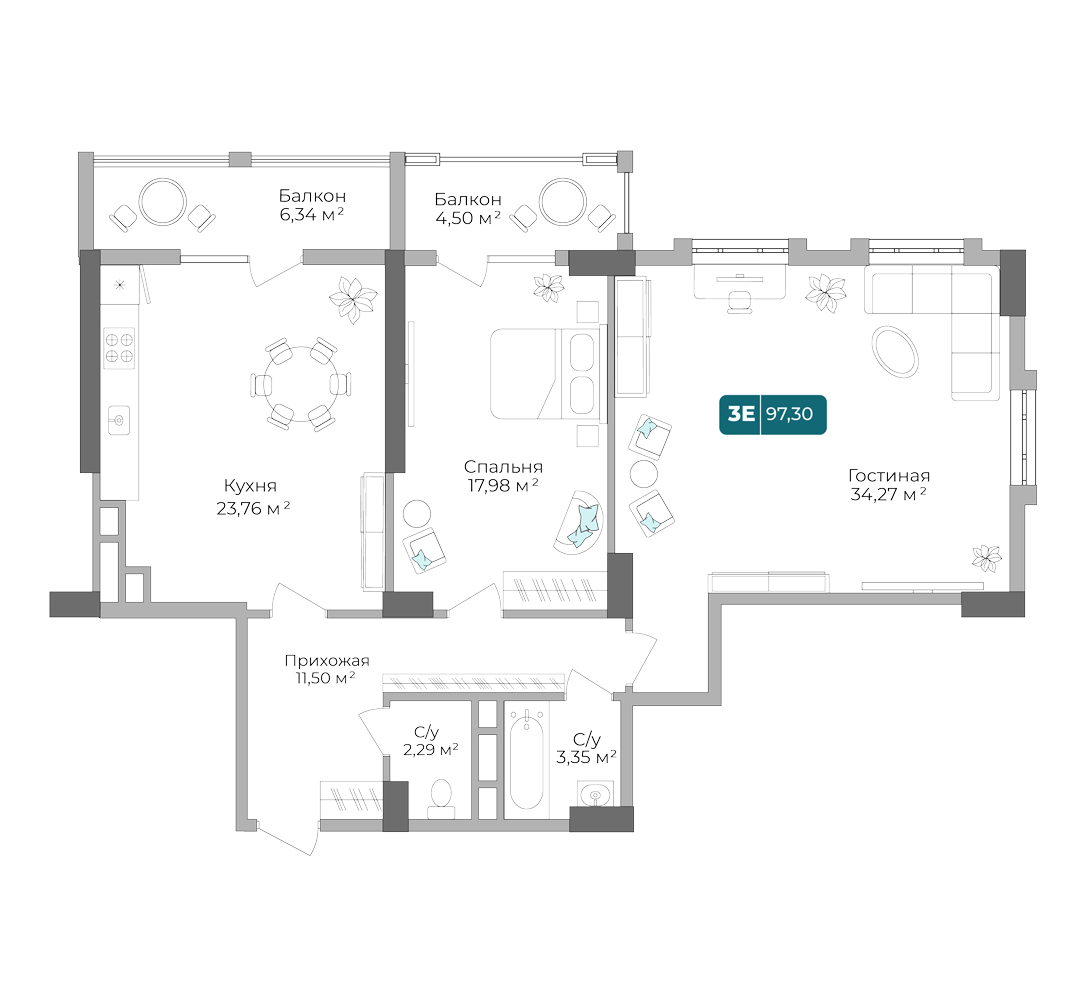 2-комнатная квартира, 103.55 м², 3 эт.