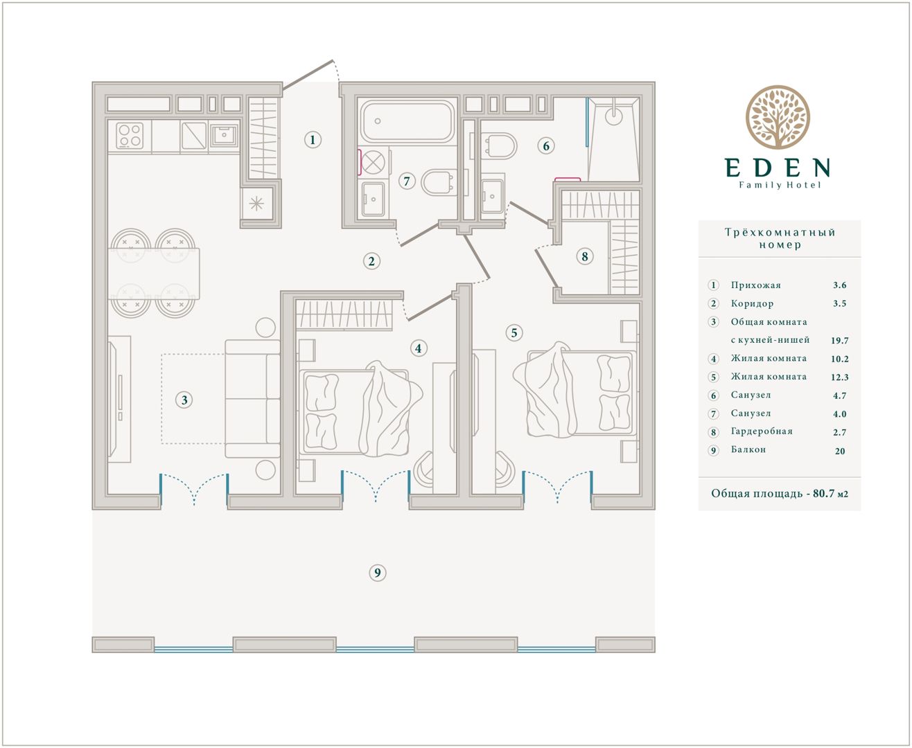 1-комнатная, 50.30 м²