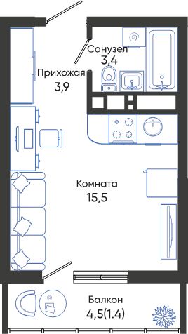 Студия, 22.30 м²