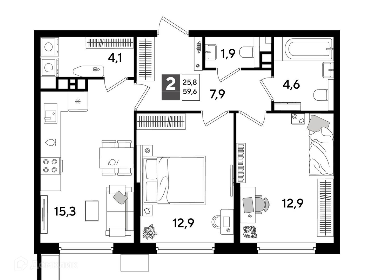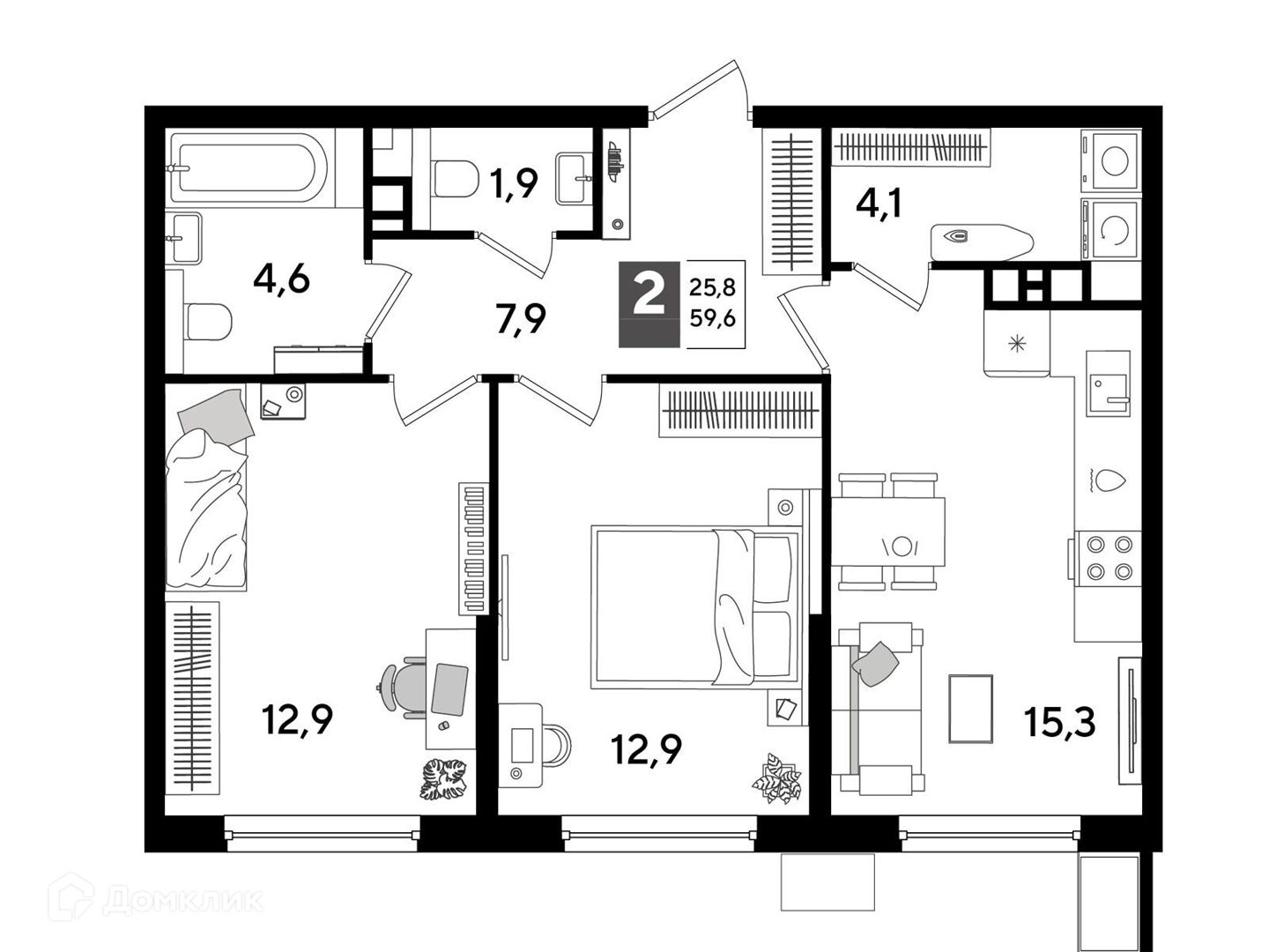 2-комнатная, 58.70 м²