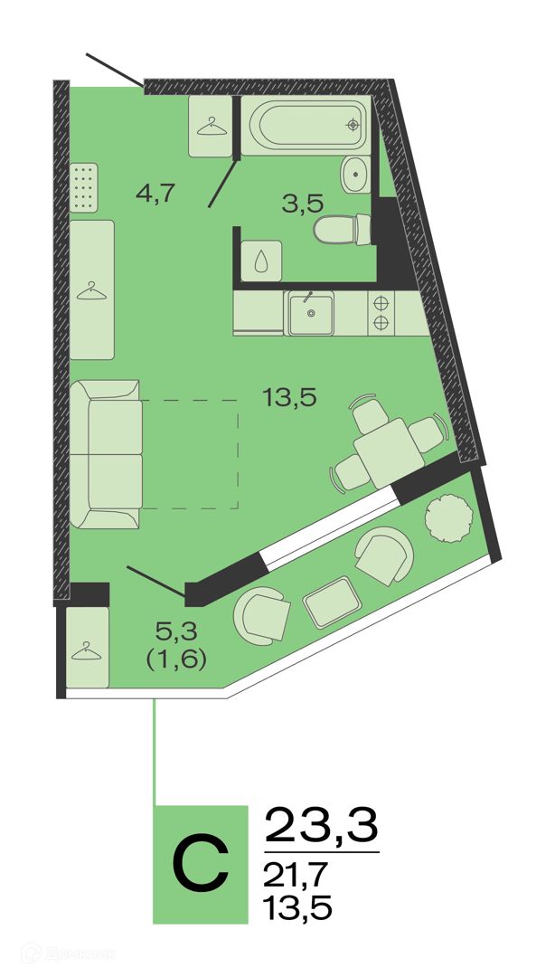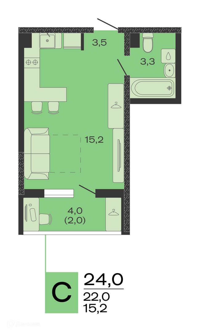 Студия, 17.70 м²