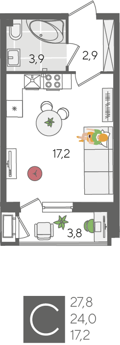 Студия, 28.00 м²