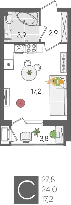 Студия, 28.20 м²