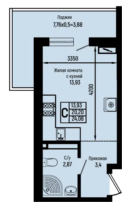 Студия, 17.24 м²