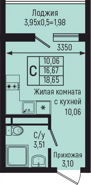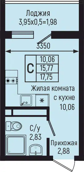 Студия, 17.06 м²
