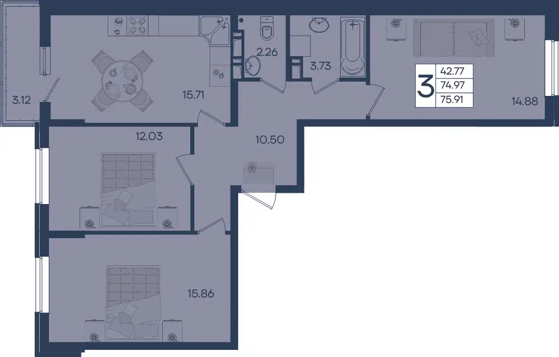 3-комнатная квартира, 78.80 м², 6 эт.