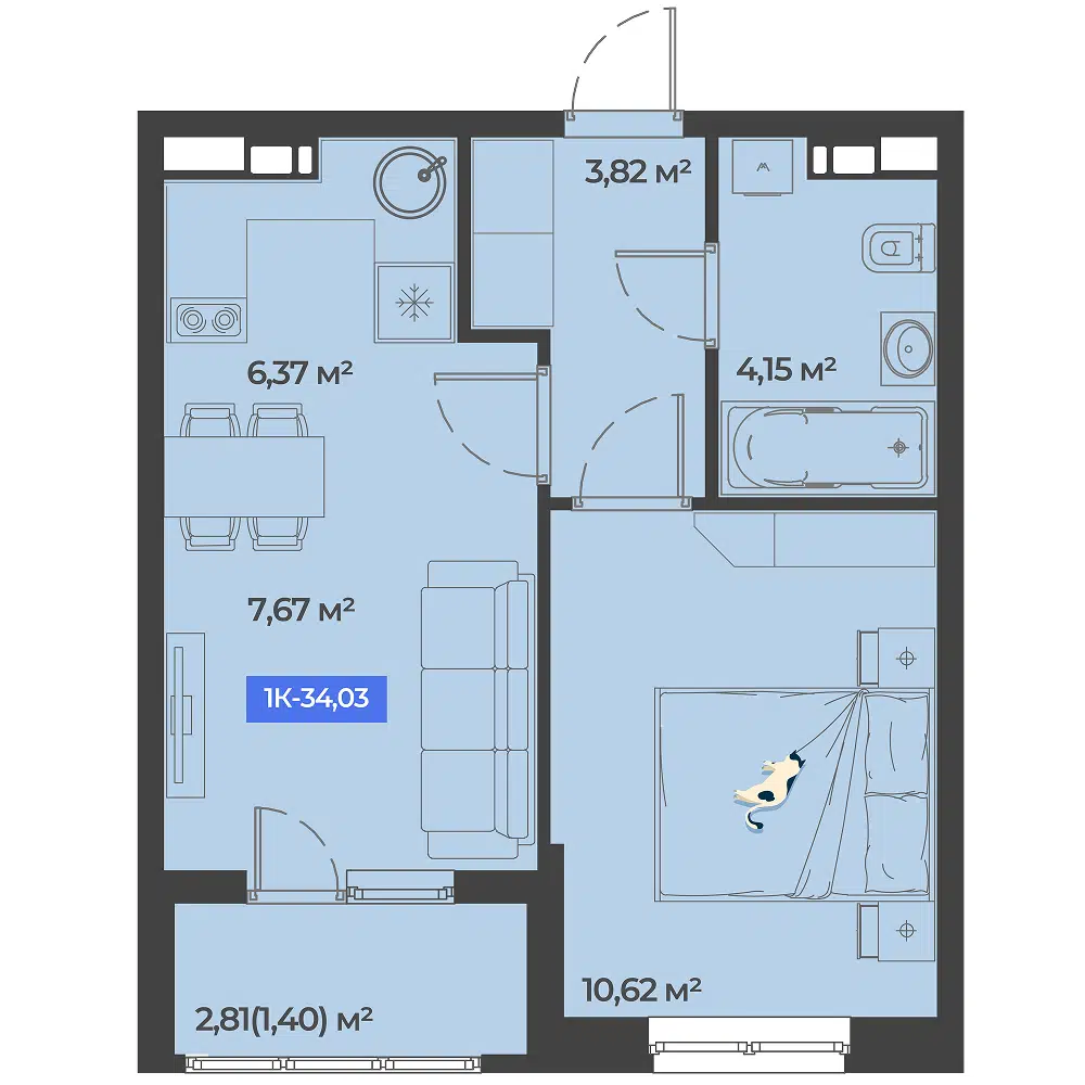 1-комн. квартира, 34.03 м²