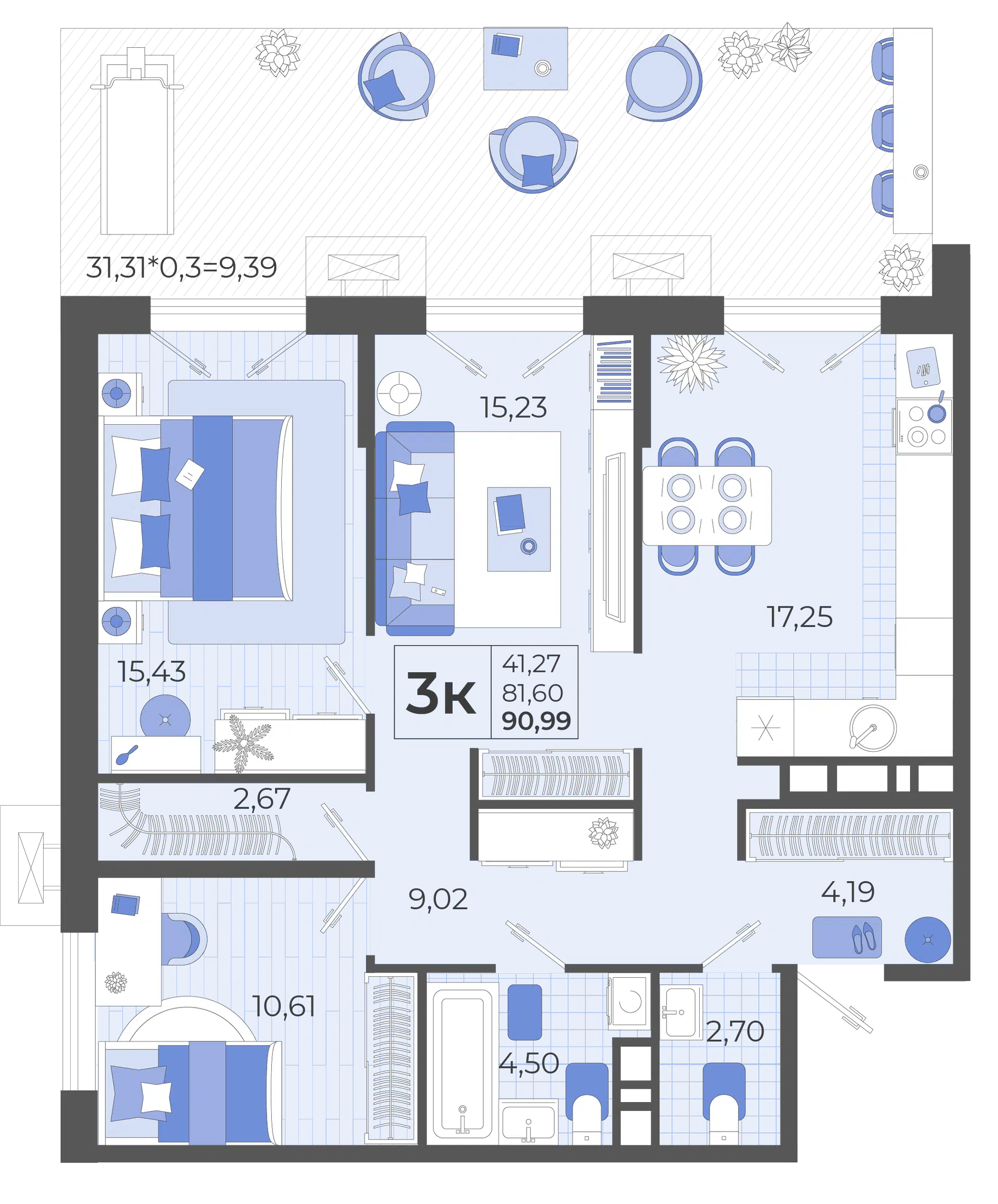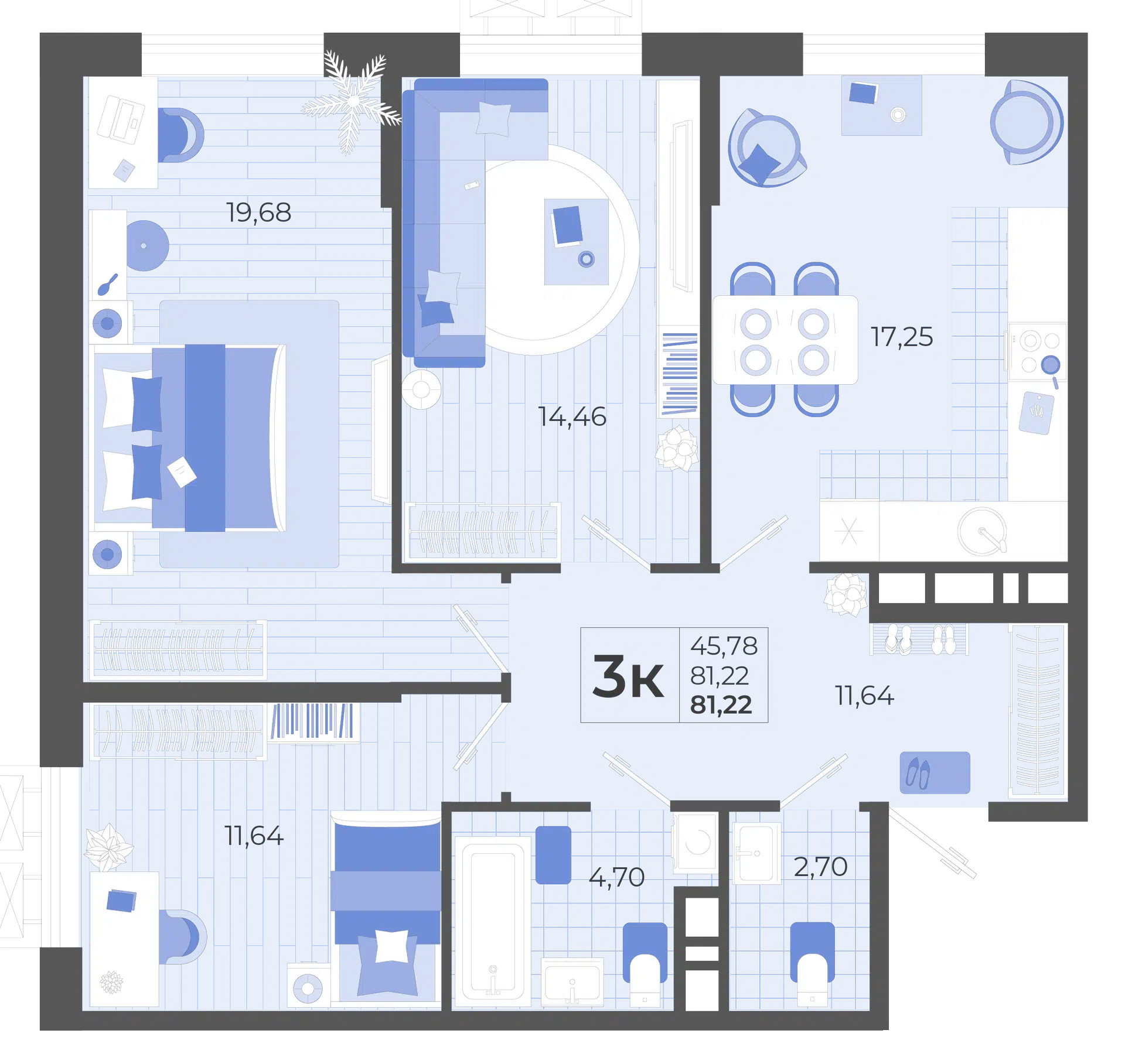 3-комнатная, 81.51 м²