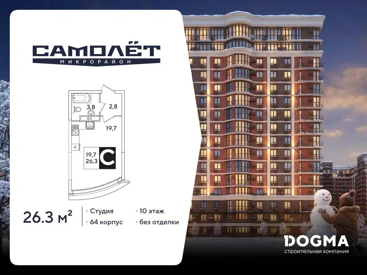 Студия, 26.30 м²