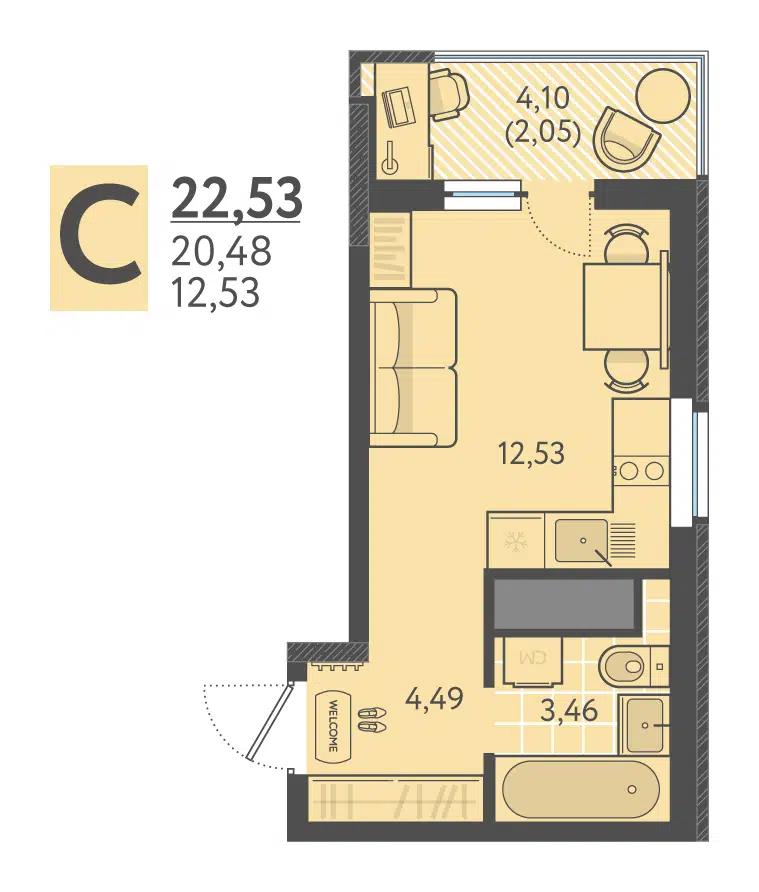Студия, 22.05 м²