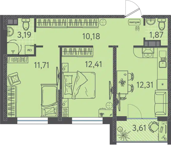 2-комнатная, 52.55 м²