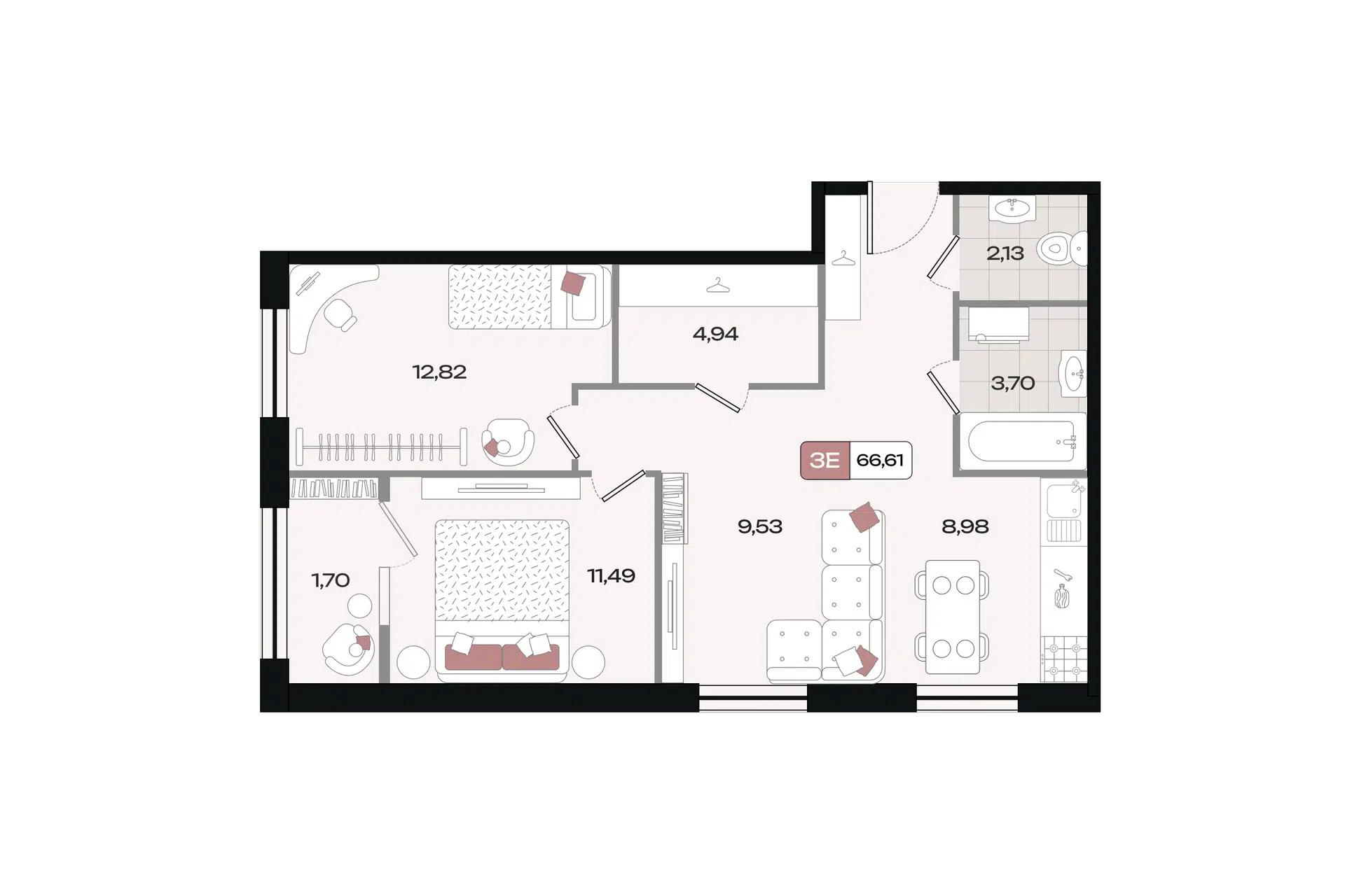 3-комнатная, 60.85 м²