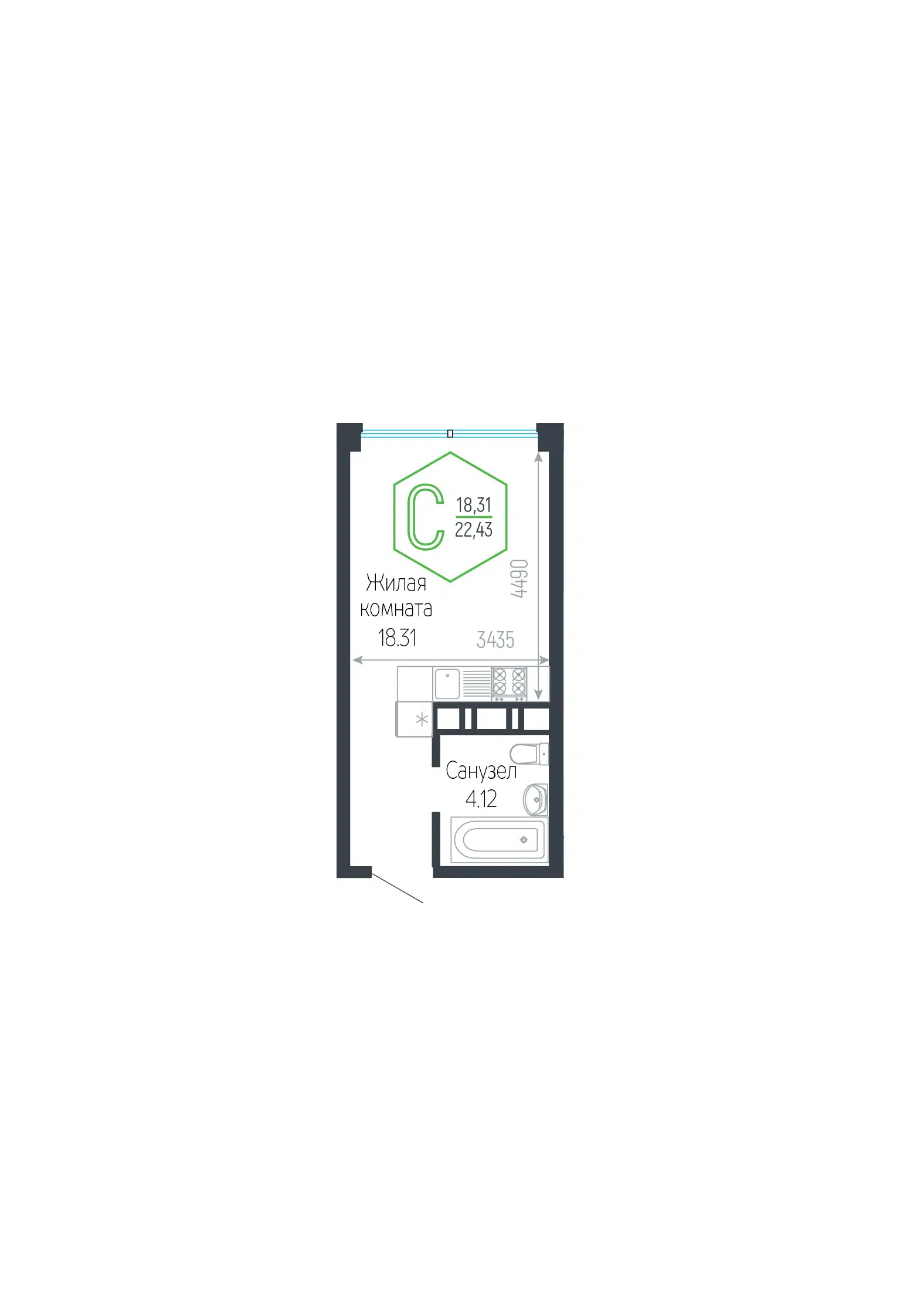 Студия, 23.22 м²